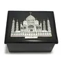 MARBLE INLAY ART AGRA - PACCHIKARI Black Marble Trinket Jewelry Box for Multi Purpose Ring Earring pills Box and Perfect gifts. The Box is made in Agra India & fully handmade. To maintain this art piece simply clean with dry cotton cloth.