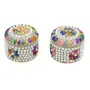 MEENAKARI ENAMEL PRODUCTS Aluminium Roud Shape Decorative Colourful Women Accessory Kumkum Box/ Sindur Box/ Sindoor Dani/ Shringar Box/Sindoor Dabbi - Pack of 2 (Silver 7 x 7 x 7 cm)