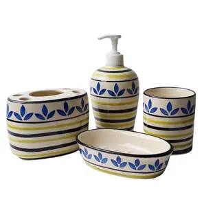 KHURJA POTTERY Hand Painted Blue Leaf...