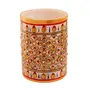 Purpledip Indian Gift Item : Marble Pen Holder/Stationery Holder Tooth Brush Holder with Handpainted Floral Designs (10562)