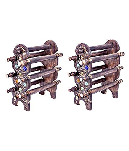 Sheesham Wooden Bangle Stand (Brown 8 Rod) Pack of 2