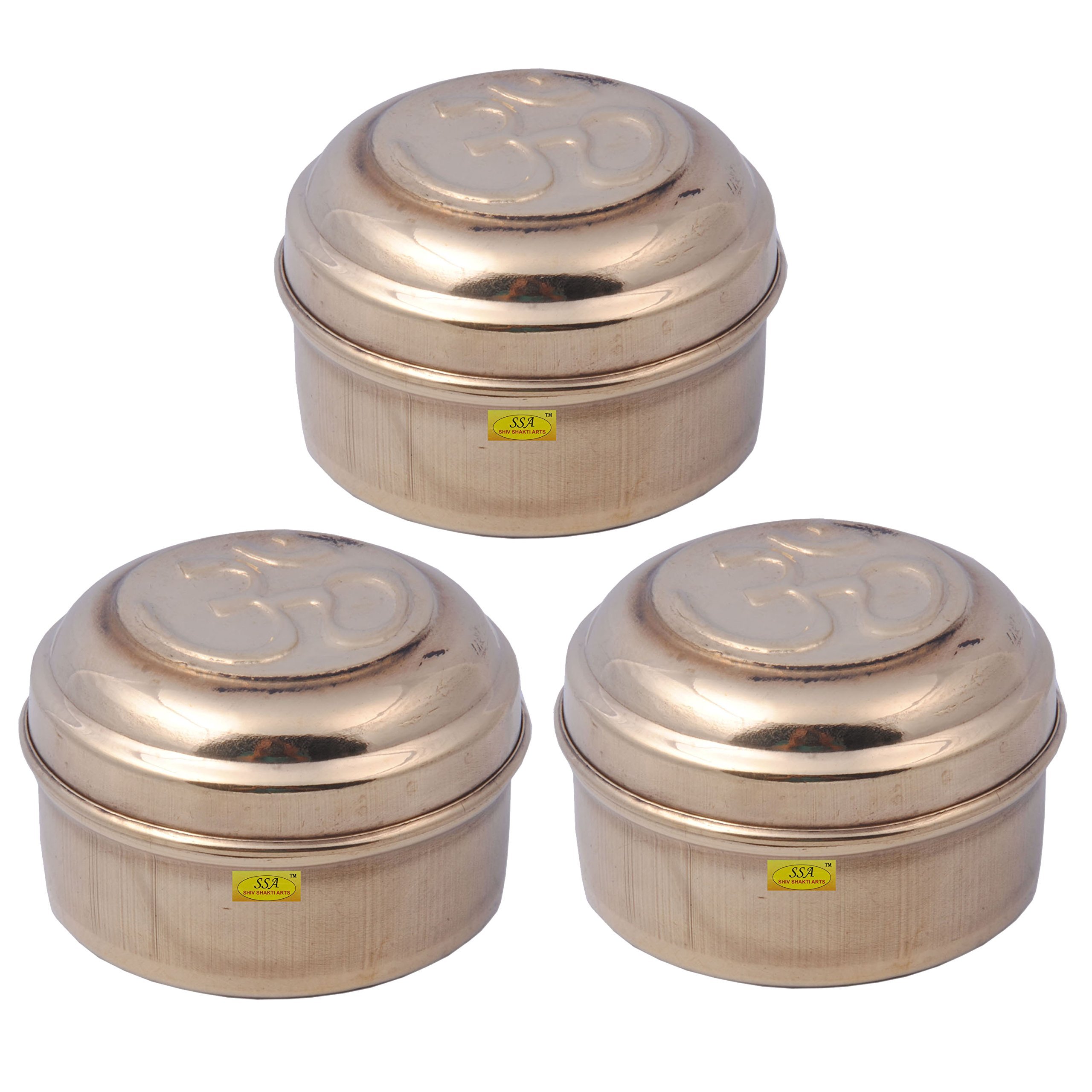 SHIV SHAKTI ARTS Handmade Pure Set of 3 Brass Box No 1 for Storage Purpose Dry Fruit Store Small Jewellery Store