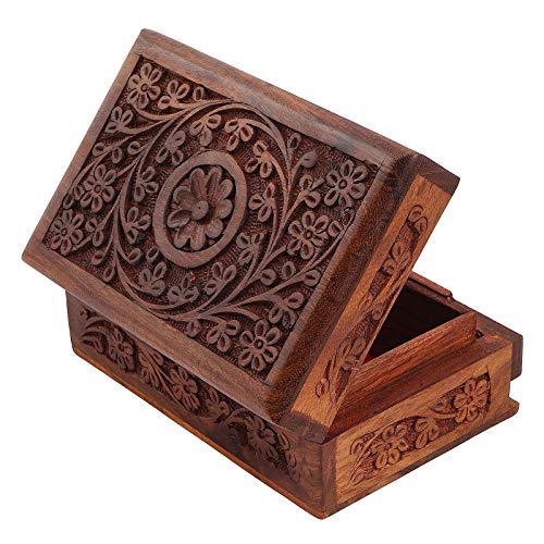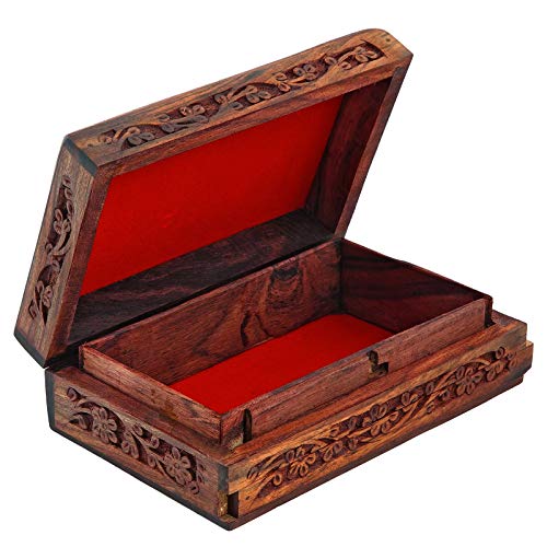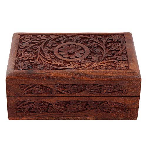 Wooden Handcarved Jewellery Box Jewel Storage Organizer Great Gift Ideas Dimension - 5.5 x 4 x 5 Inch Product features: Protect and preserve your valuables with this handcrafted wooden jewelry box. You always want to keep your best valuables precious jewelry safely. This wooden jewelry box is perfect for organizing your Jewelry collection. A stylish way to keep your jewelry organized. Other Details: This wooden jewelry box has a curved; traditional design; rich brown finish. Our handmade jewelry boxes make gifts for women and girls that can be treasured for a lifetime.