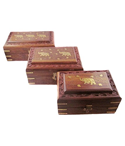 Wooden Handicrafts Box Set of 3 with Brass Handwork