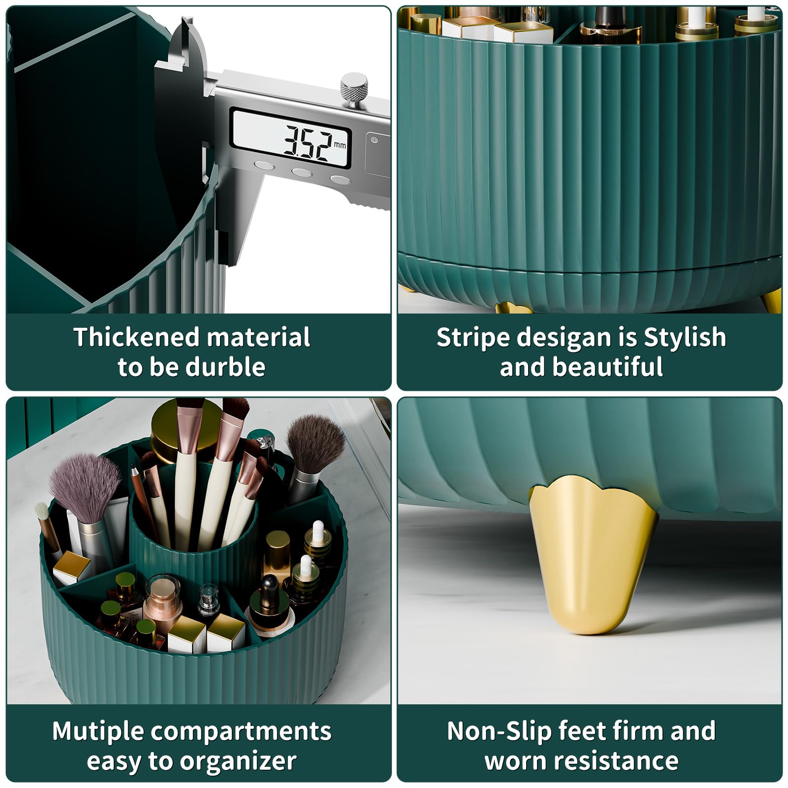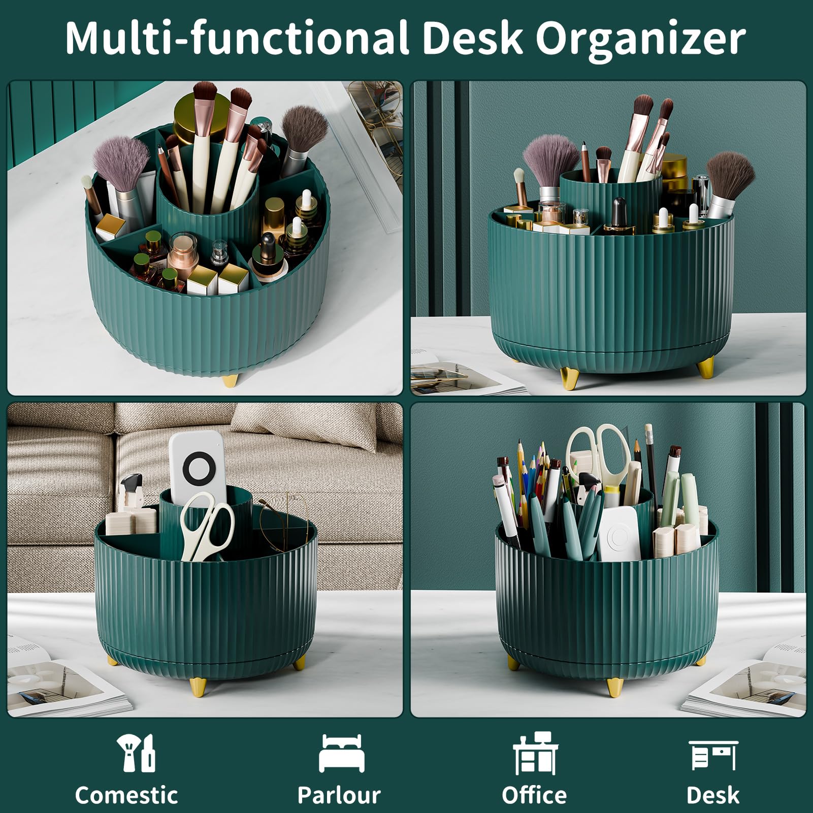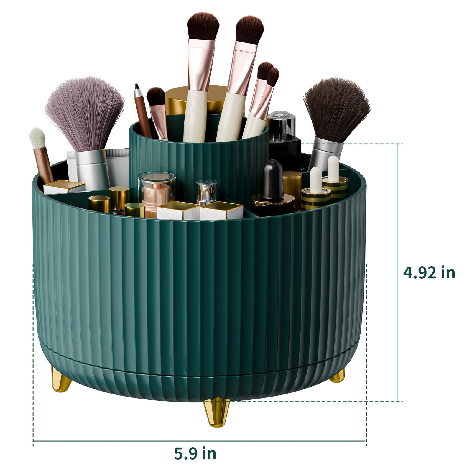 360° ROTATION ORGANIZER The makeup organizer for vanity can be rotated 360° which would bring more convenience for you daily life. You can easily catch items from all directions just need to lightly rotate the makeup brush holder.