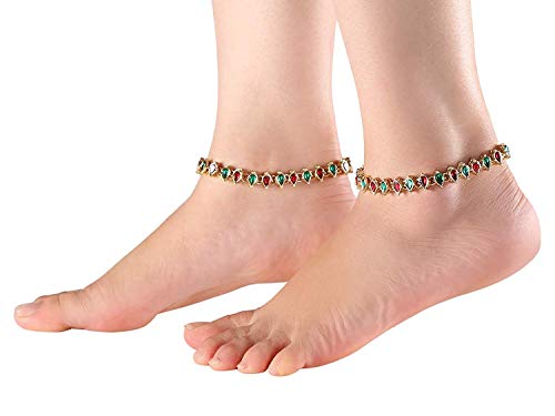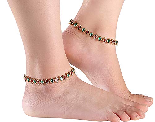 I Jewels 18k Gold Plated Indian Wedding Bollywood Style Stone Anklet/Payal Barefoot Jewelry for Women (A024-27-29)