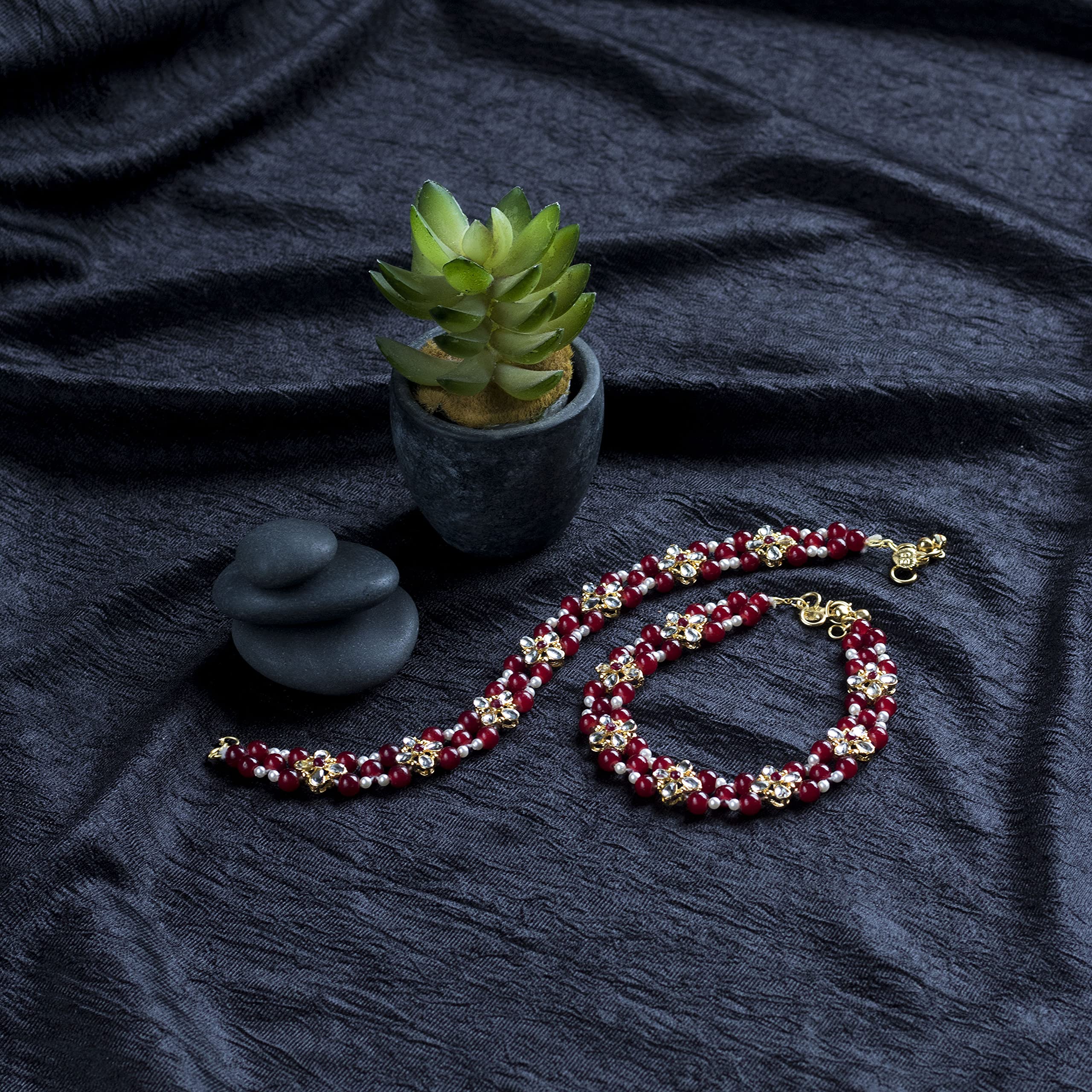 HomeFashionJewelleryAnkletsI Jewels Traditional Gold Plated Encased With Faux Kundan & Pearls Adjustable Pair Of Bridal Anklets Payal For Women/Girls (A039)