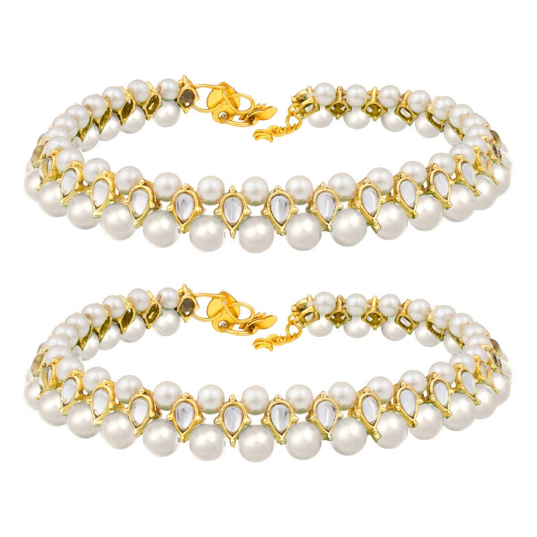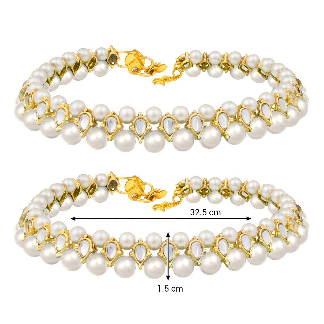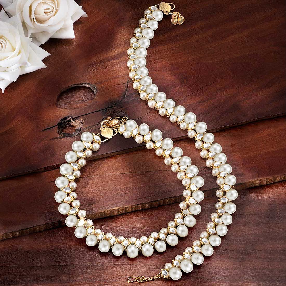 I Jewels Traditional Gold Plated Kundan Pearl Payal Anklets Jewellery for Women & Girls