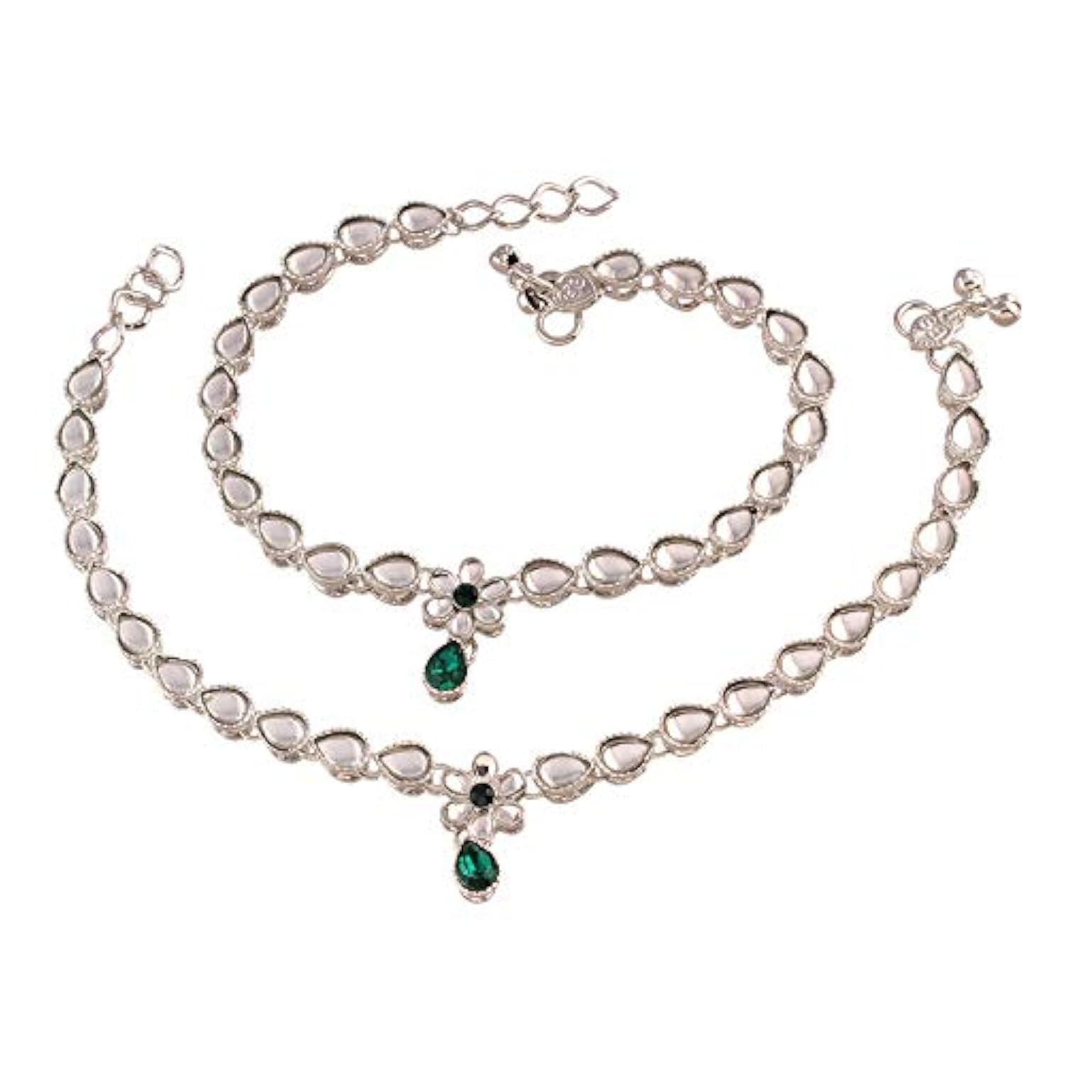I Jewels Traditional Silver Plated Kundan Payal Anklets For Girls & Women (A019-20)