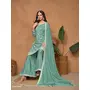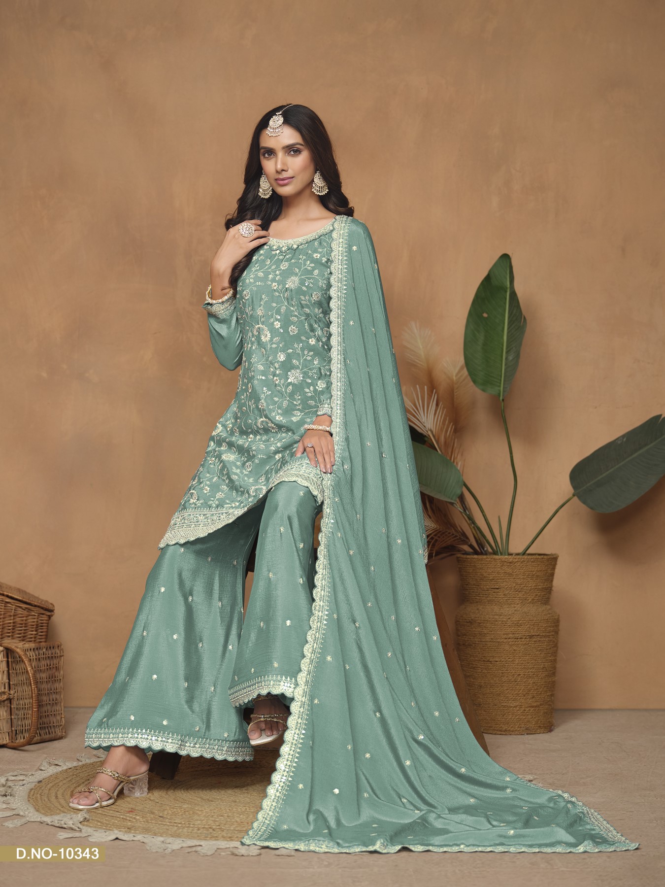 Aqua Blue Embroidered Chinon Silk Semi Stitched Palazzo Suit