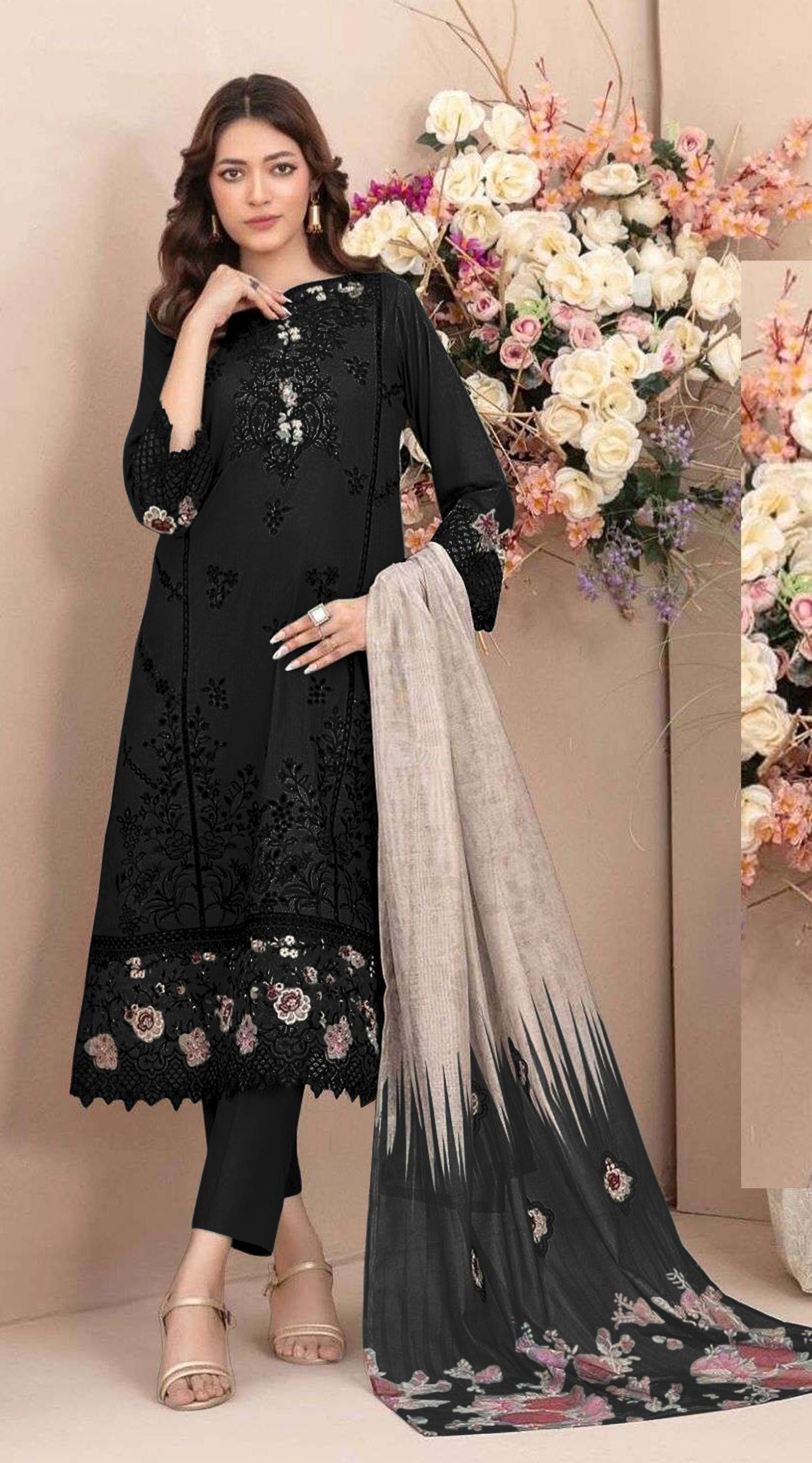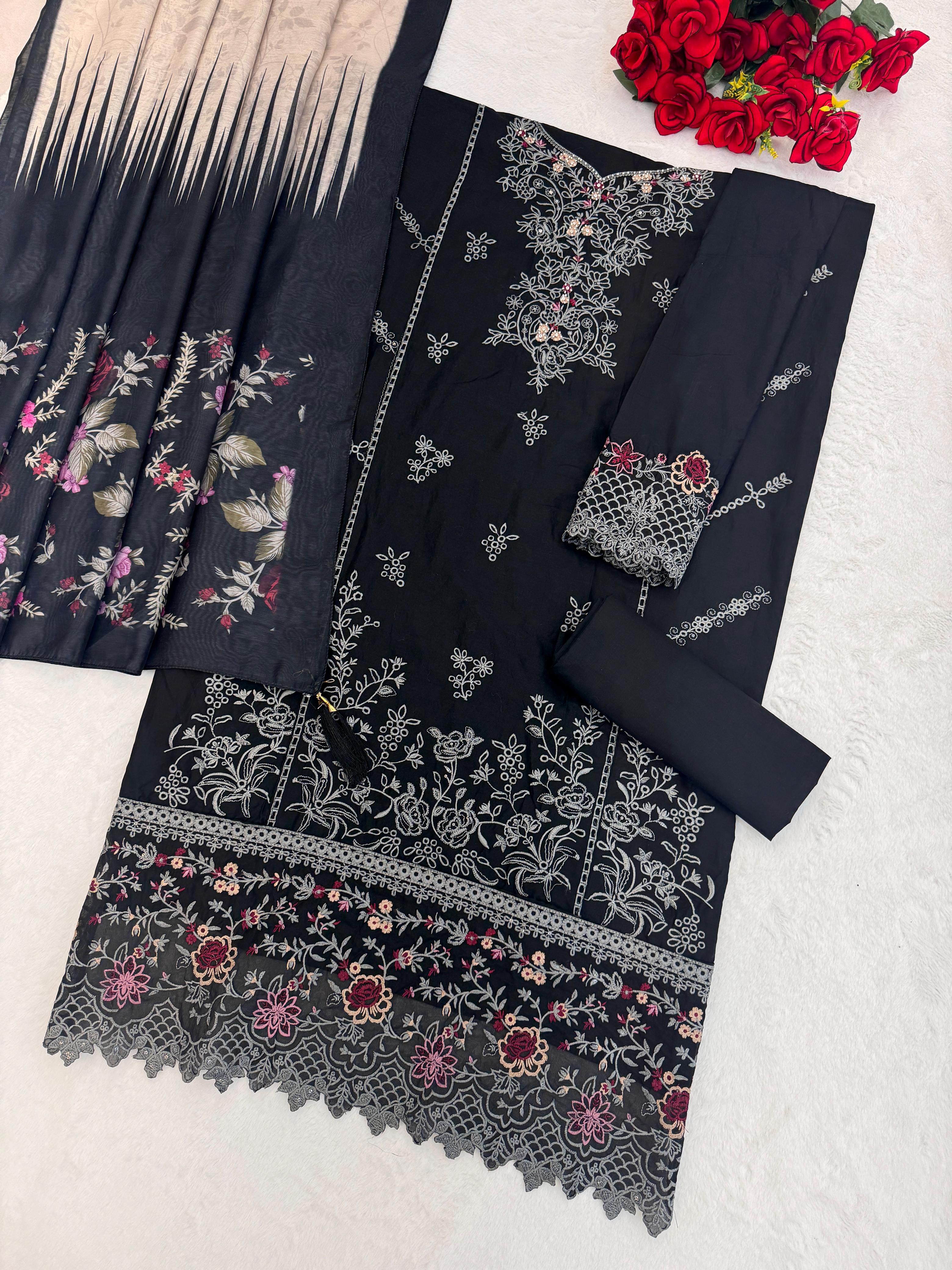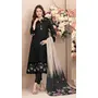 Black Cambric Cotton Semi Stitched Suit with Embroidery & Sequence Work
