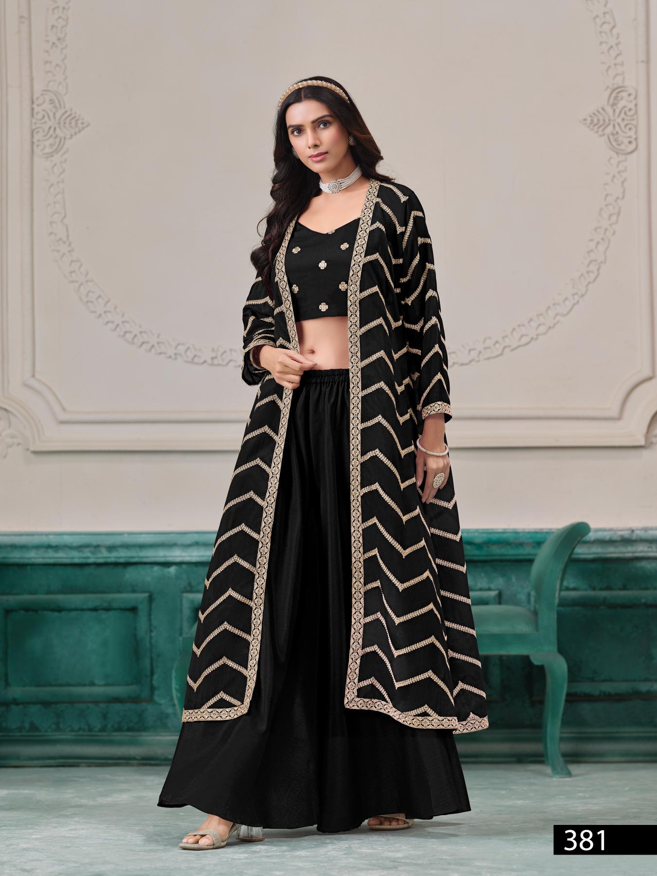 Black Chinon Designer Free Size Stitched Indo Western