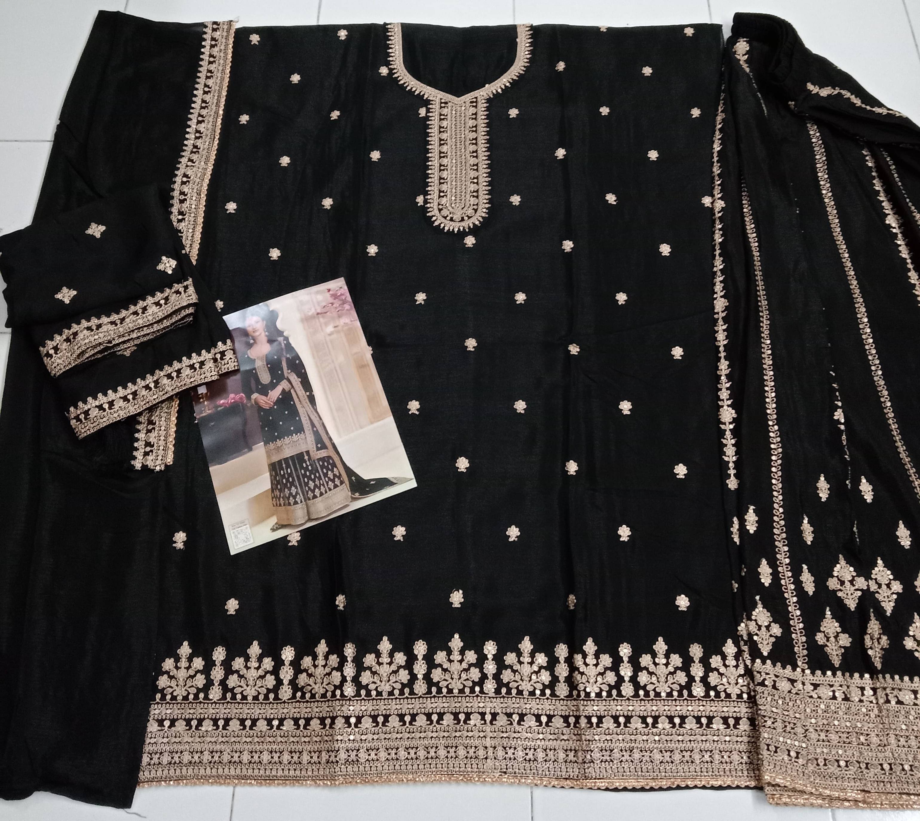 Black Chinon Embroidered Semi Stitched Salwar Suit