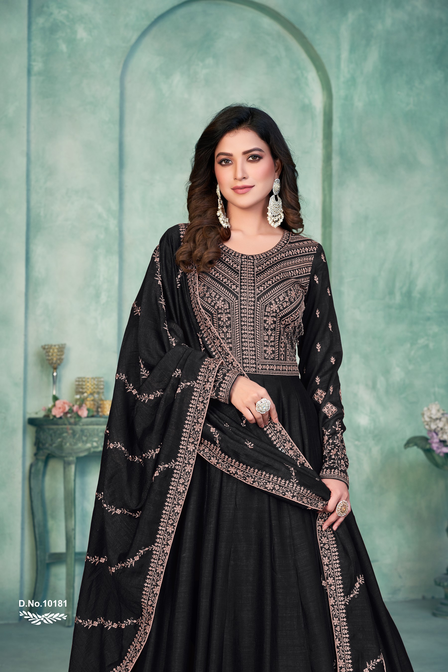 Black Embroidered Art Silk Semi Stitched Anarkali Suit