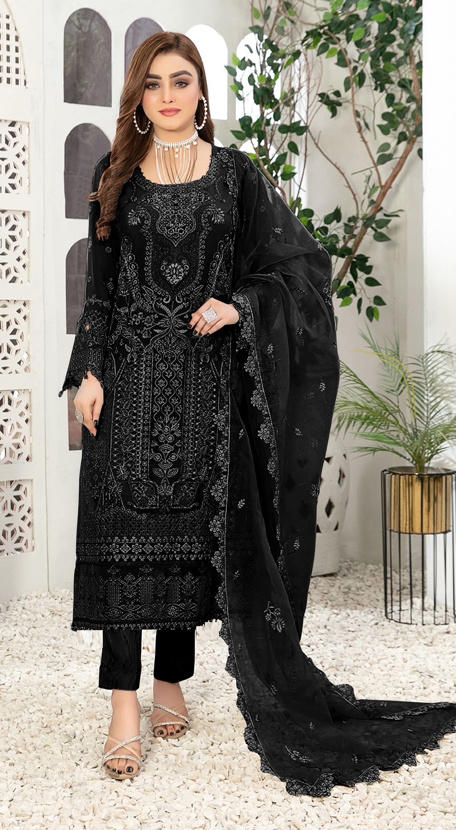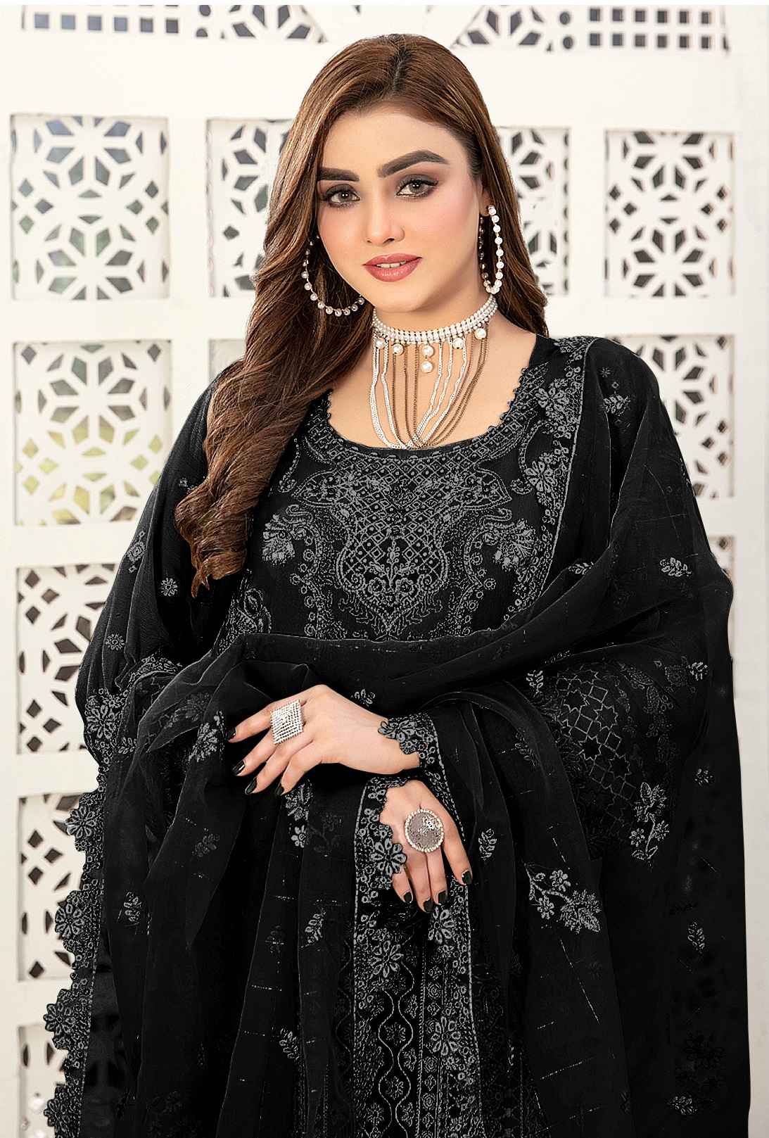 Black Embroidered Faux Georgette Semi Stitched Salwar Suit
