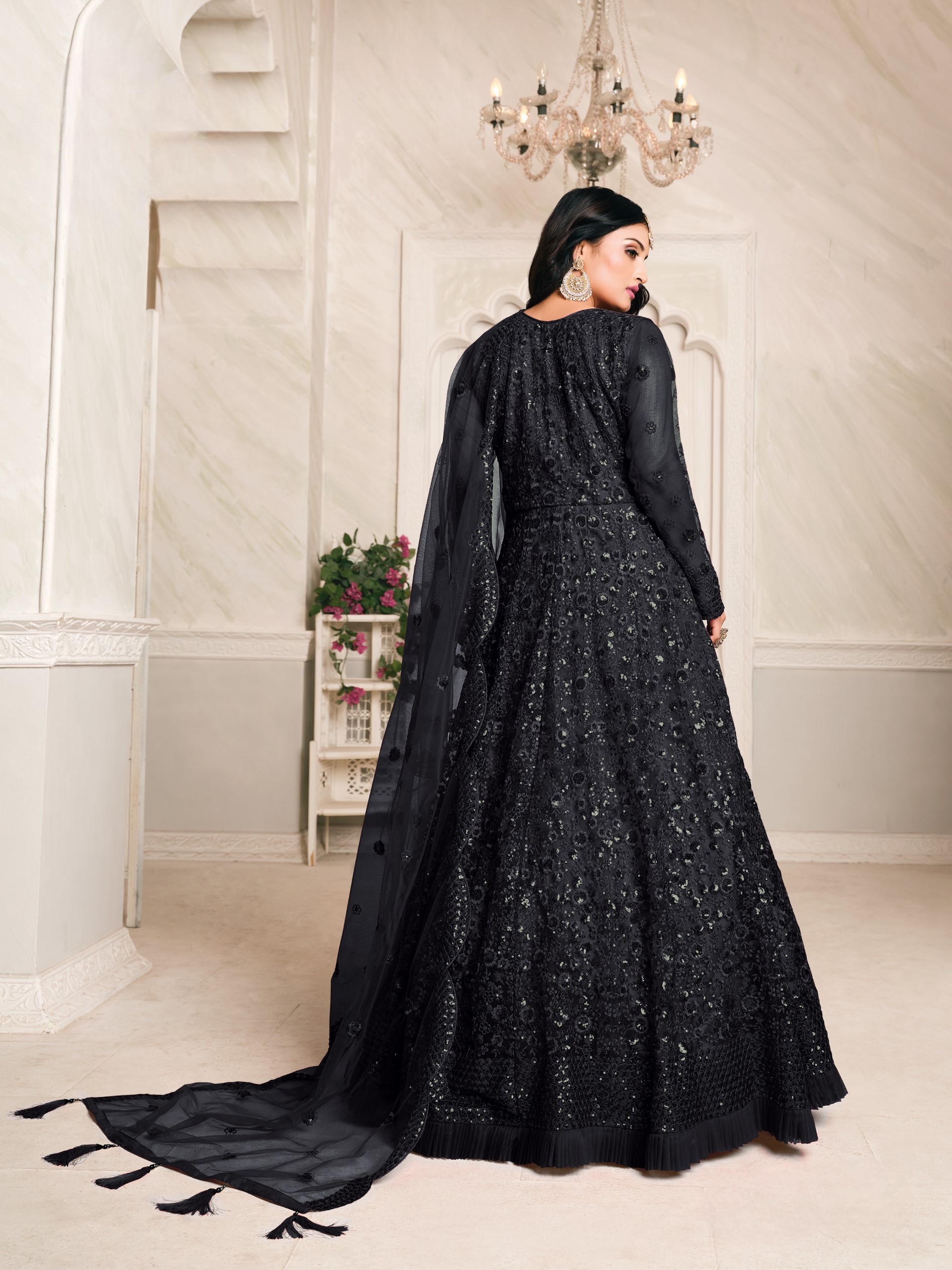 Black Embroidered Net Semi Stitched Anarkali Suit
