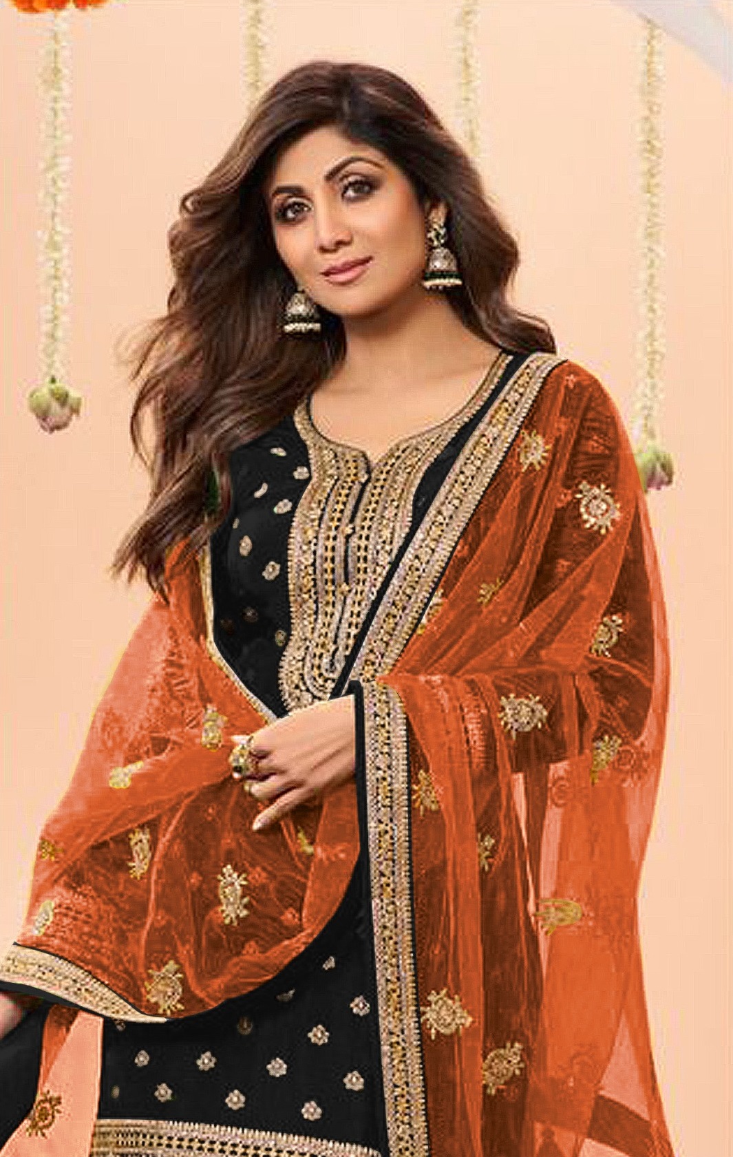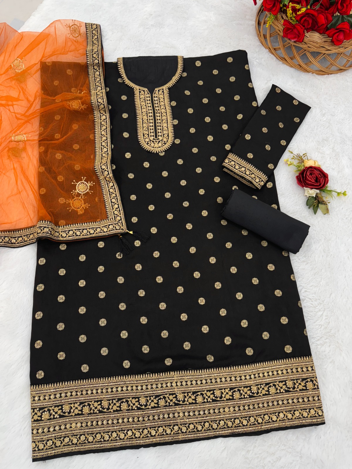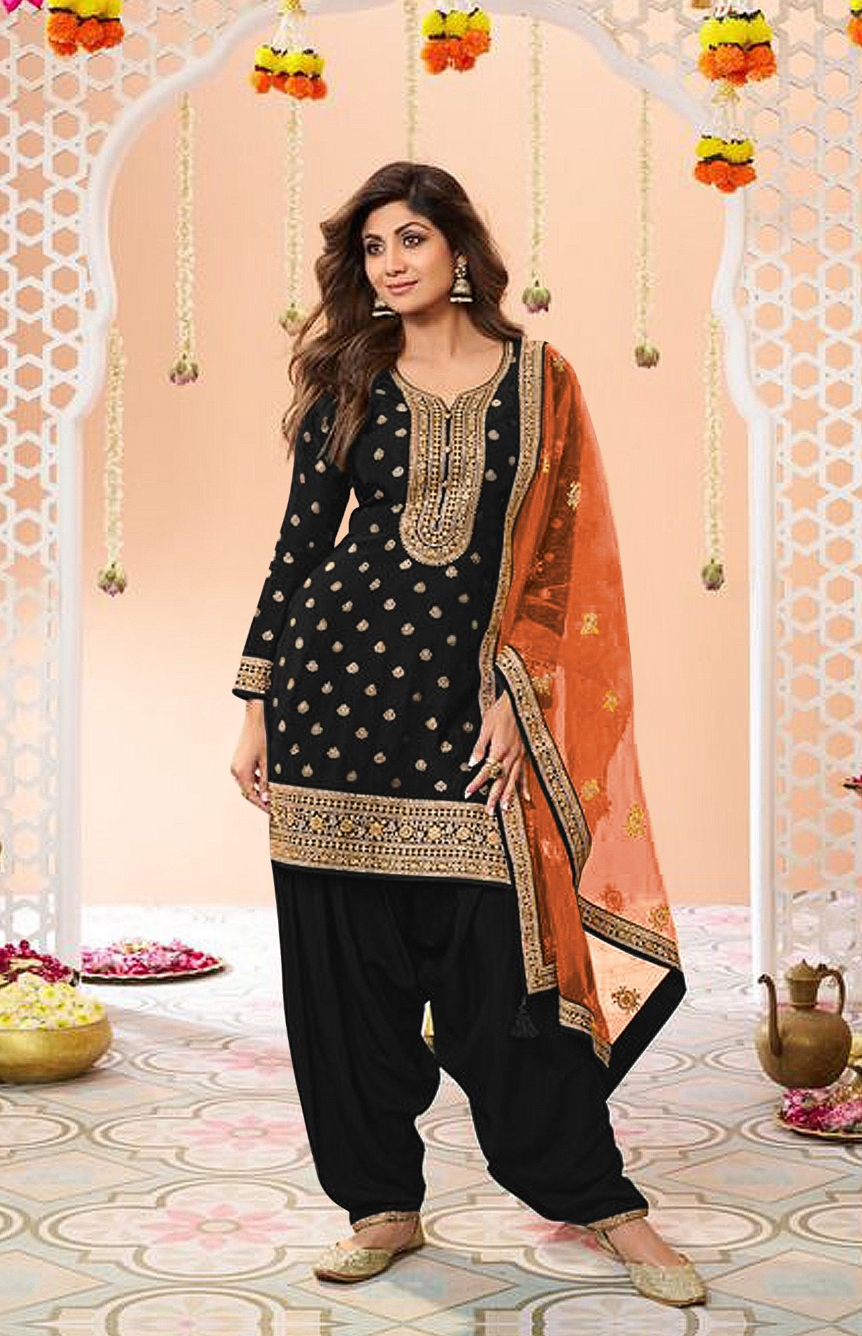 Black Embroidered Viscose Semi Stitched Patiala Salwar Suit