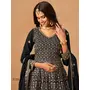 Black faux georgette semi stitched plazzo suit with heavy embroidery work