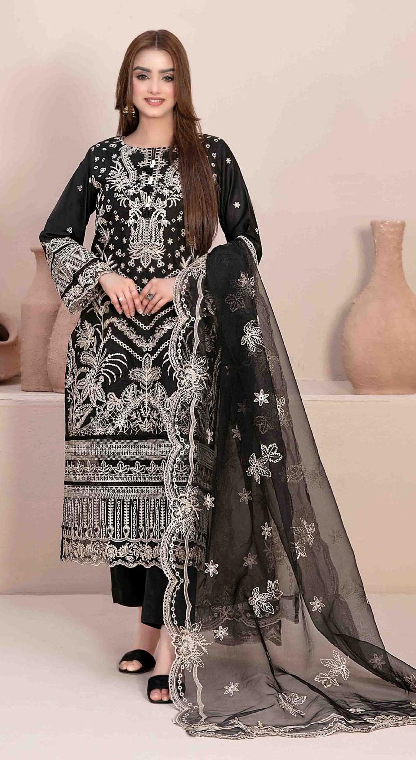 Black Faux Georgette Semi Stitched Suit with Embroidery Work