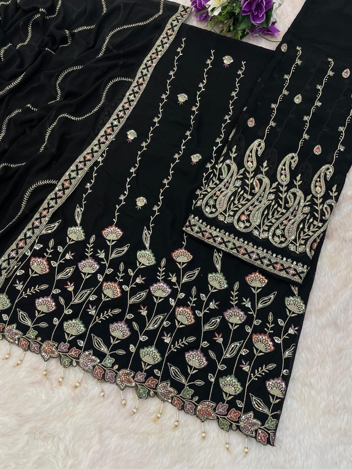Black Heavy Fox Georgette Semi Stitched Suit With Embroidery Work