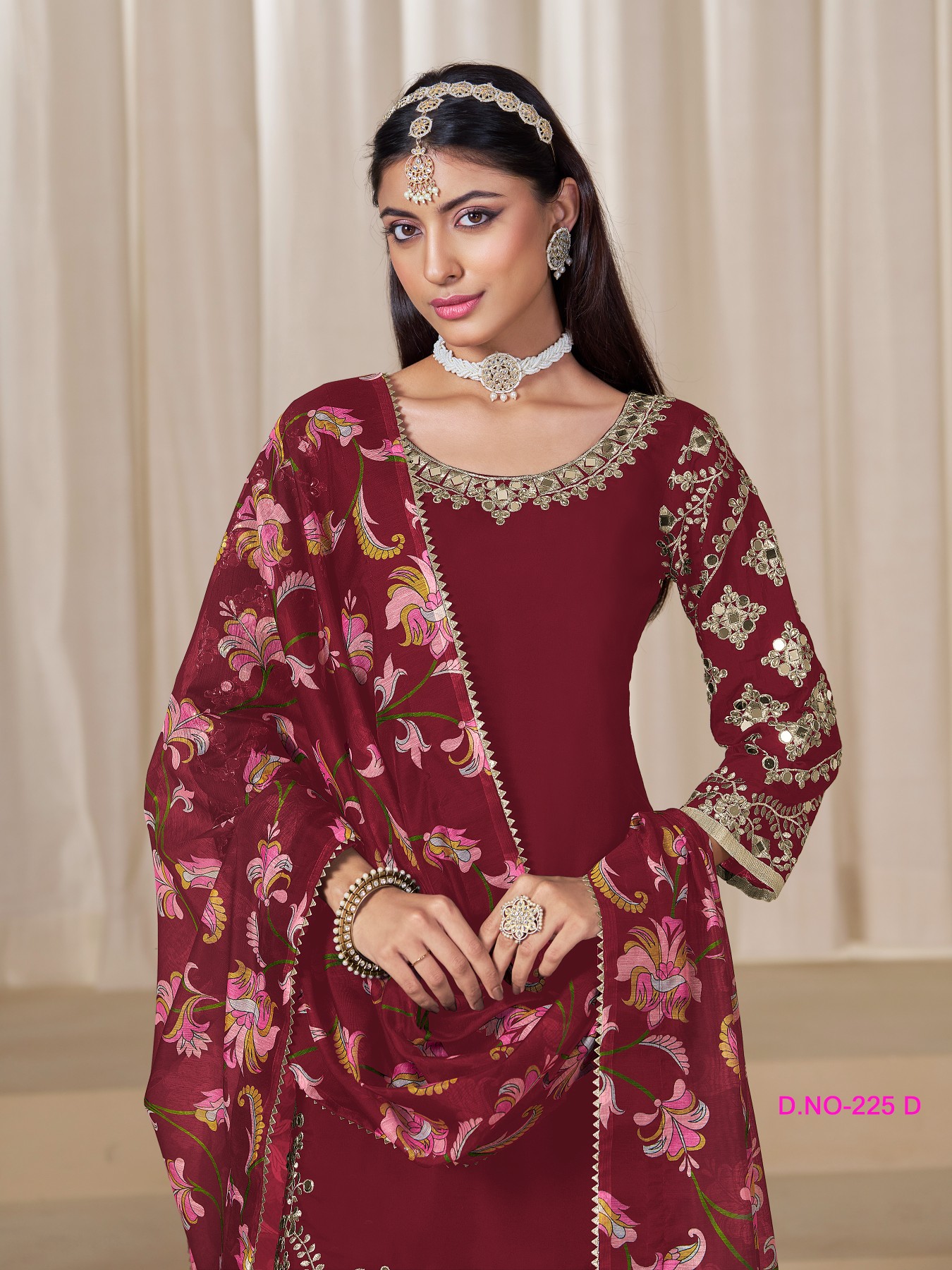 Blood-red Premium Embroidered Roman Silk Semi Stitched Salwar Suit