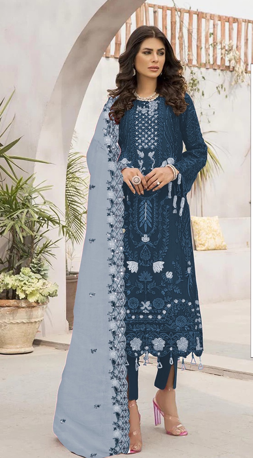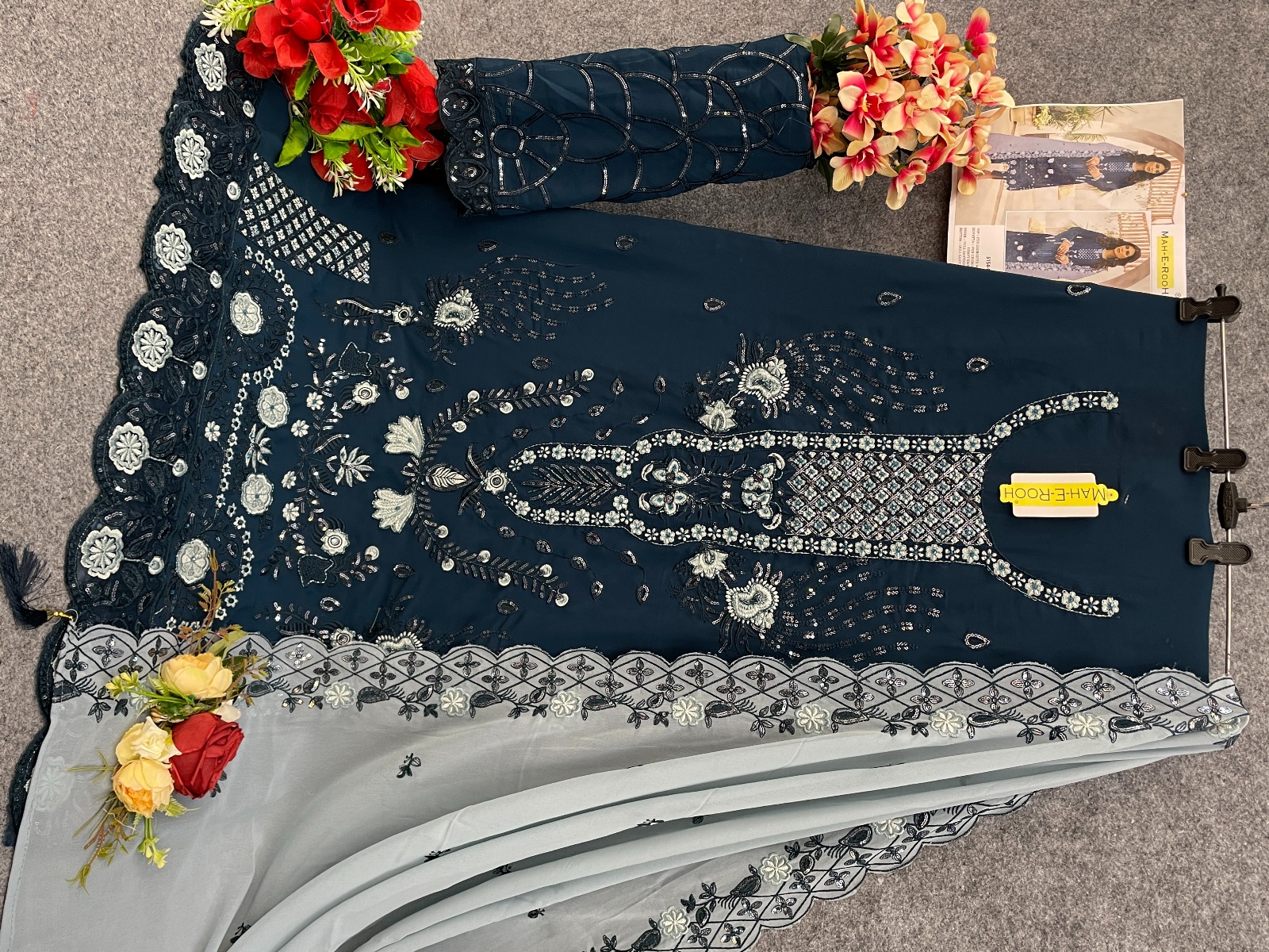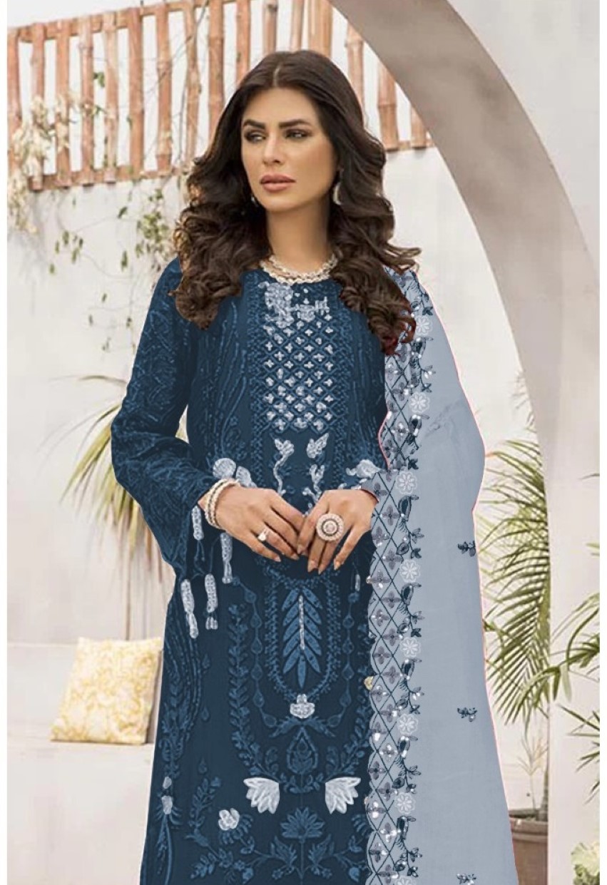 Blue Embroidered Faux Georgette Semi Stitched salwar Suit