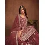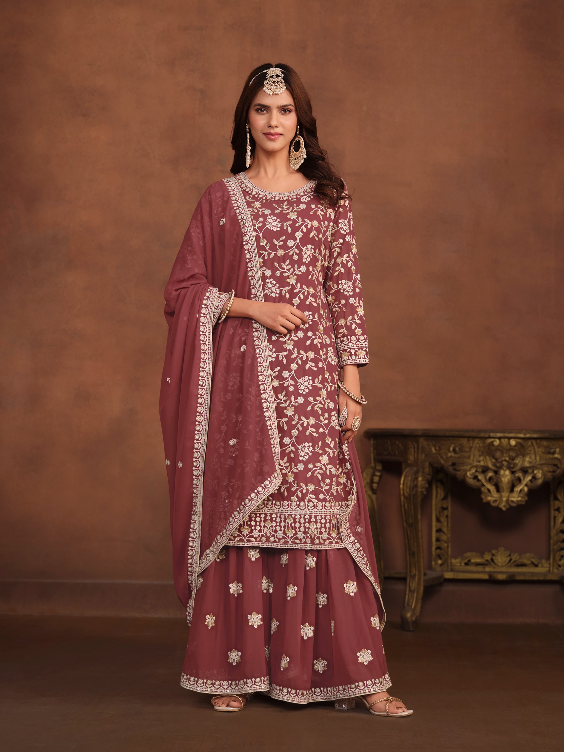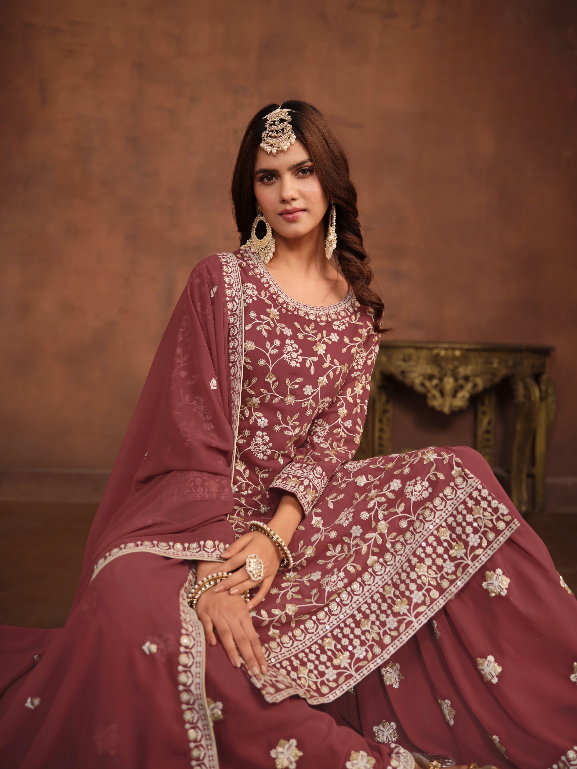 Brown Embroidered Faux Georgette Semi Stitched Salwar Suit