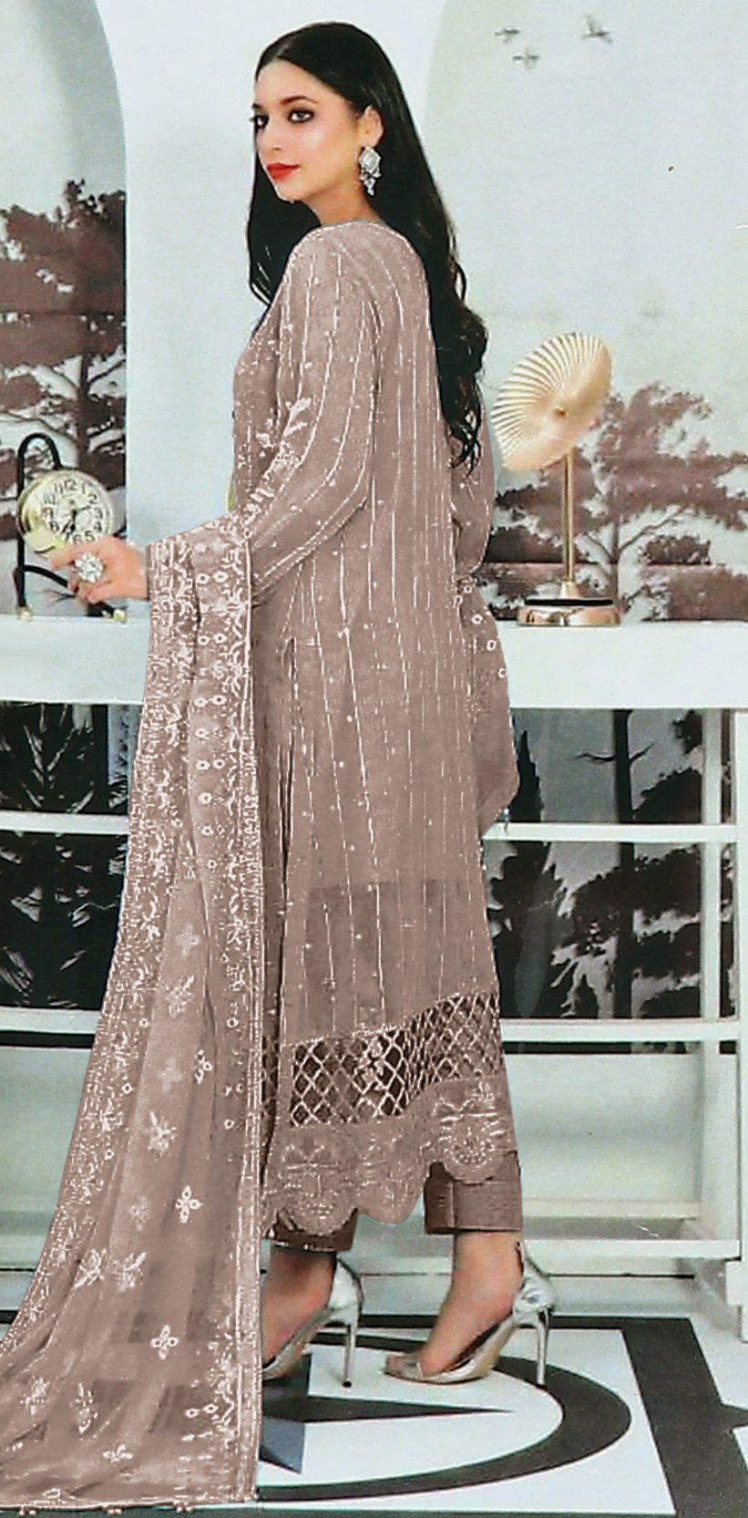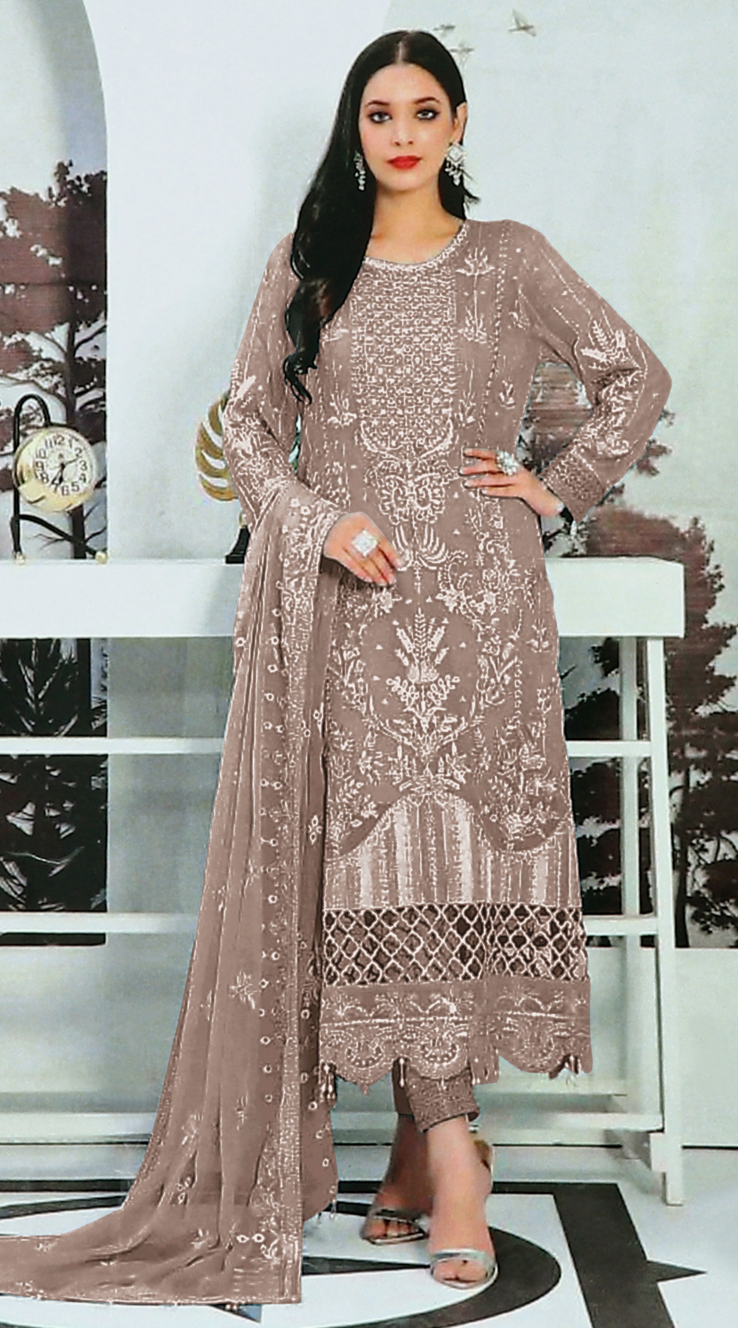 Brown Embroidered Faux Georgette Semi Stitched Salwar Suit