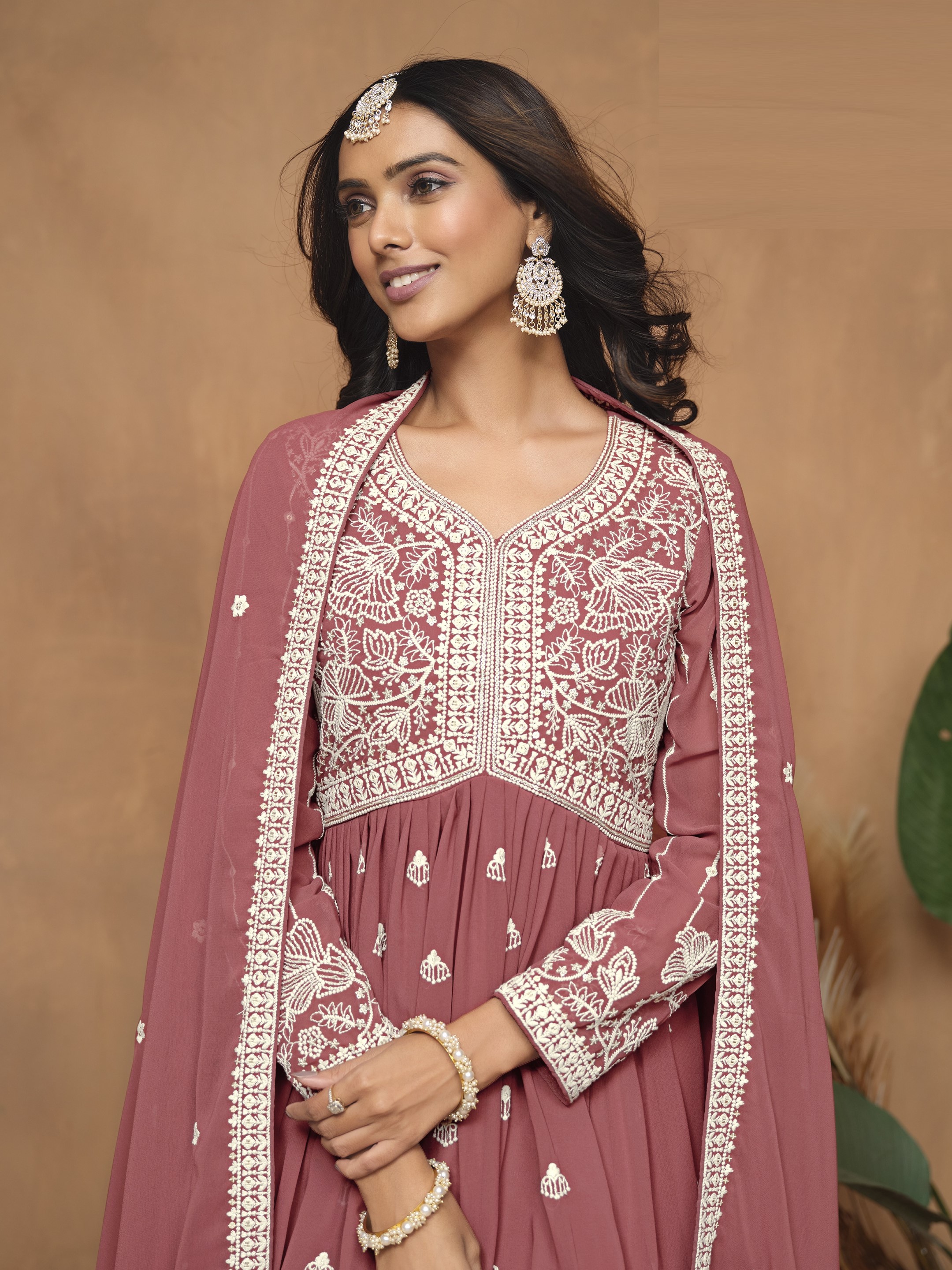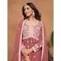 Brown Embroidered Faux Georgette Semi Stitched Sharara Suit