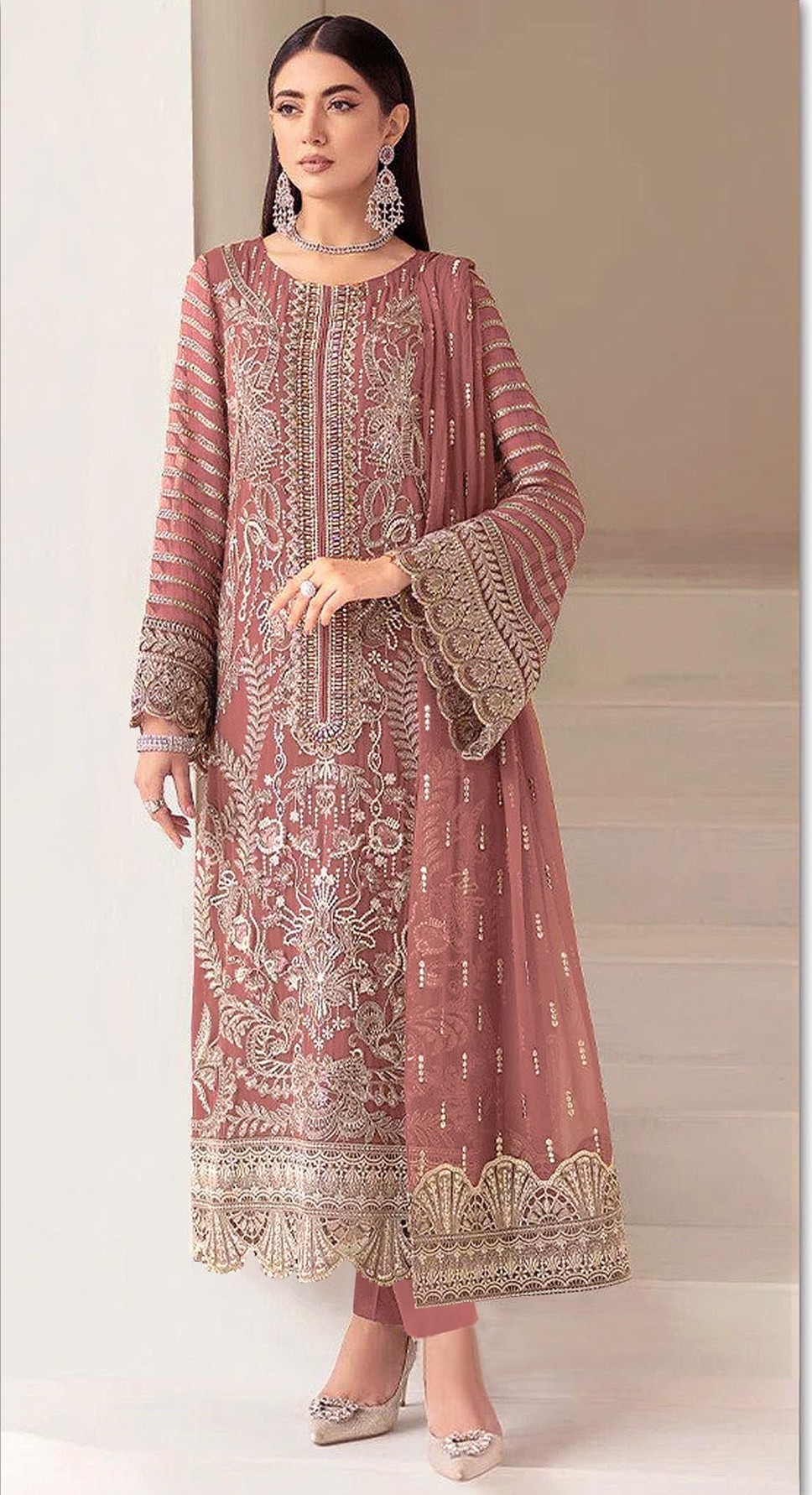 Brown Fox Georgette Semi Stiutched Suit with Embroidery Sequenc & Khatli Work