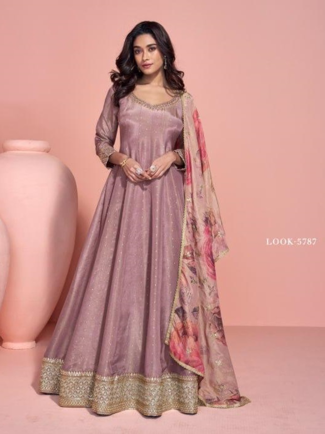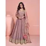 Brown Shimmer Free Size Stitched Anarkali Suit with Sequence Embroidery Foil Stich Work