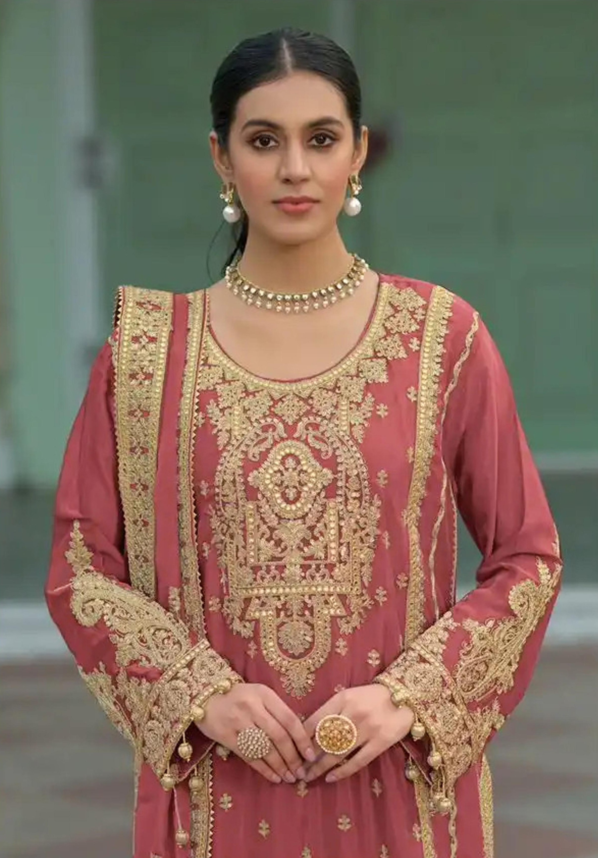 Coral Heavy Chinon Readymade Plazzo Suit with Heavy Embroidery Work