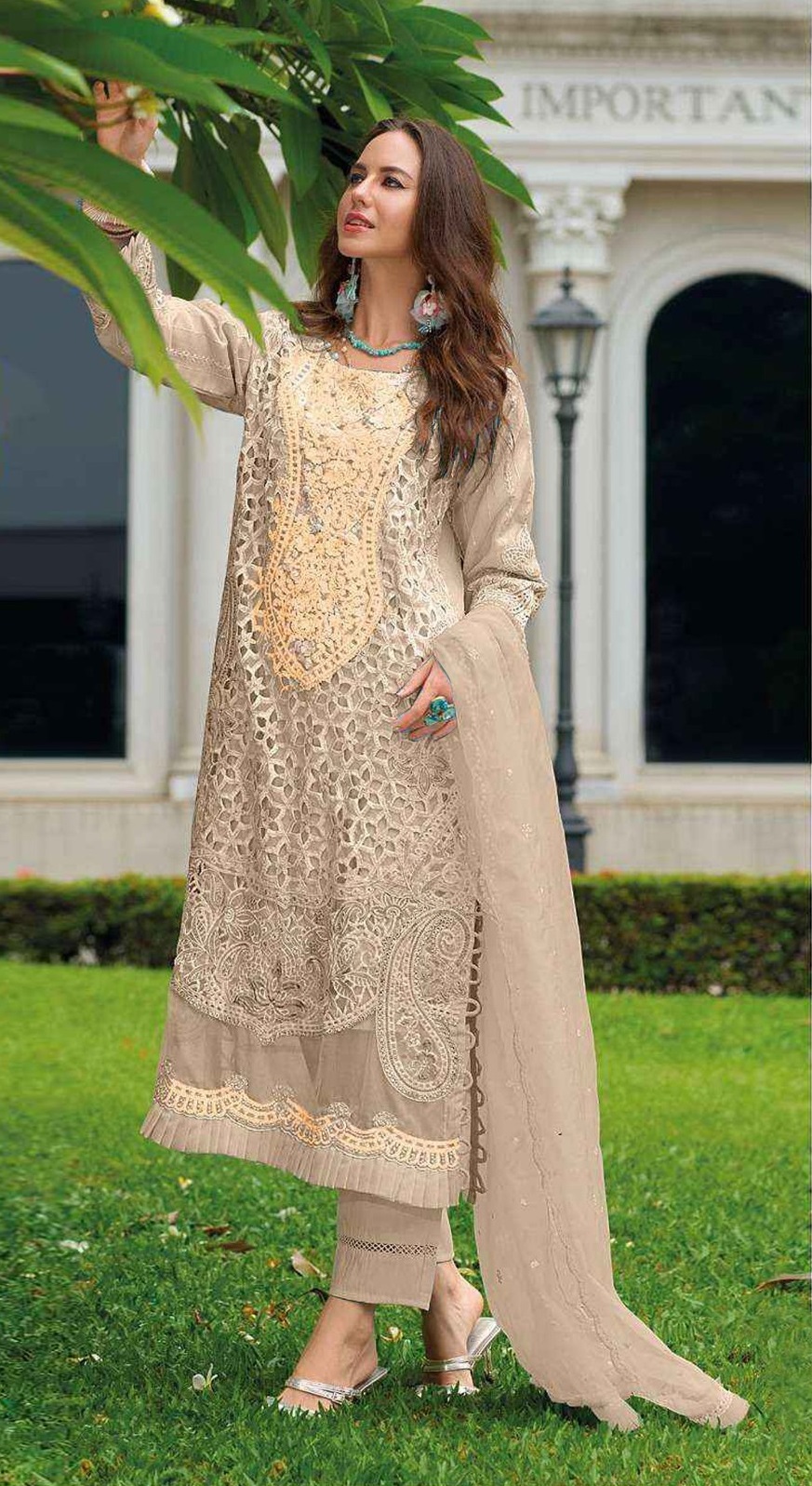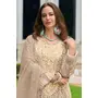 Cream embroidered sequence cut work heavy organza unstitched suit with moti & Frill