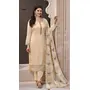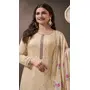 Cream Silk Embroidered Semi-Stitched Salwar Suit