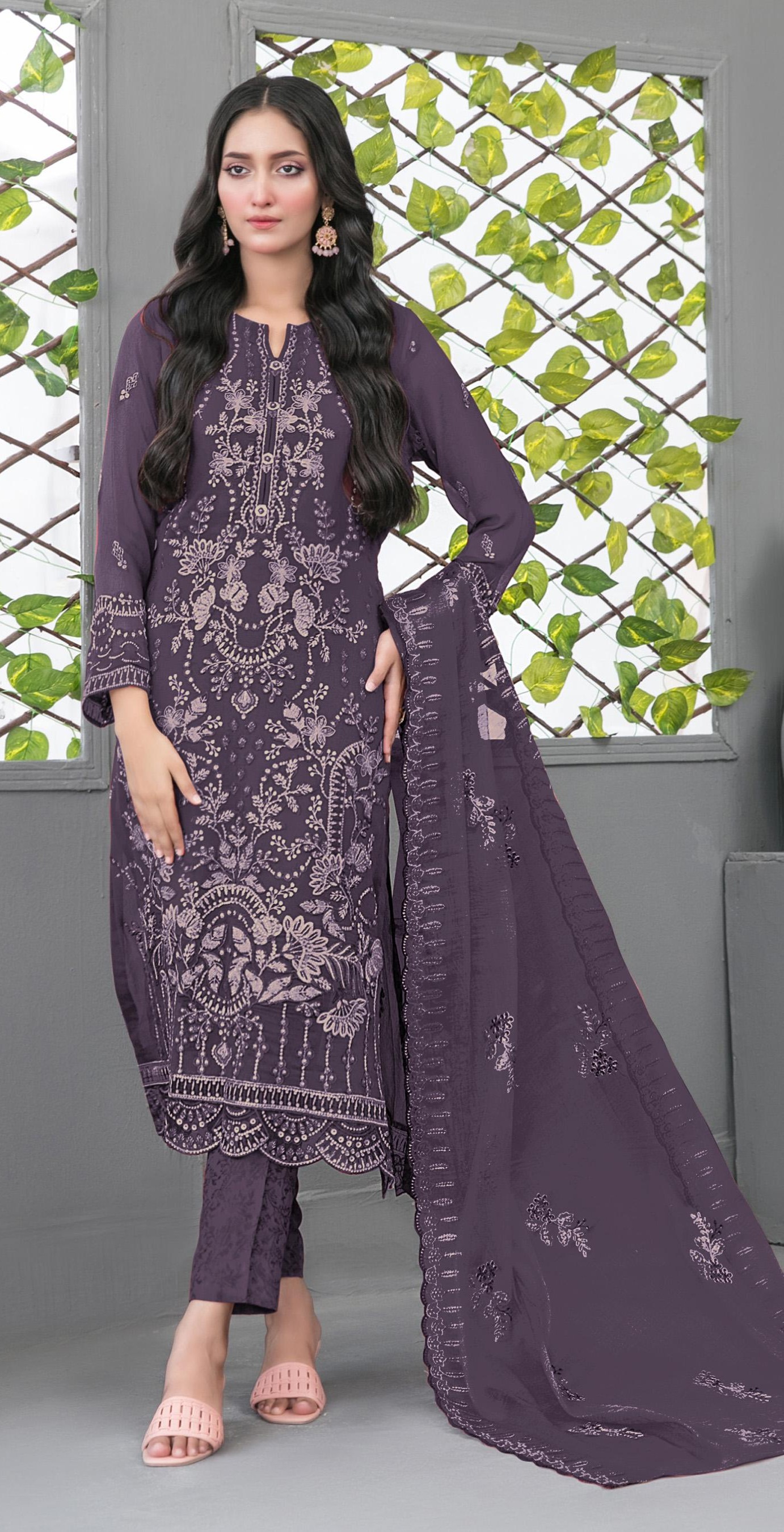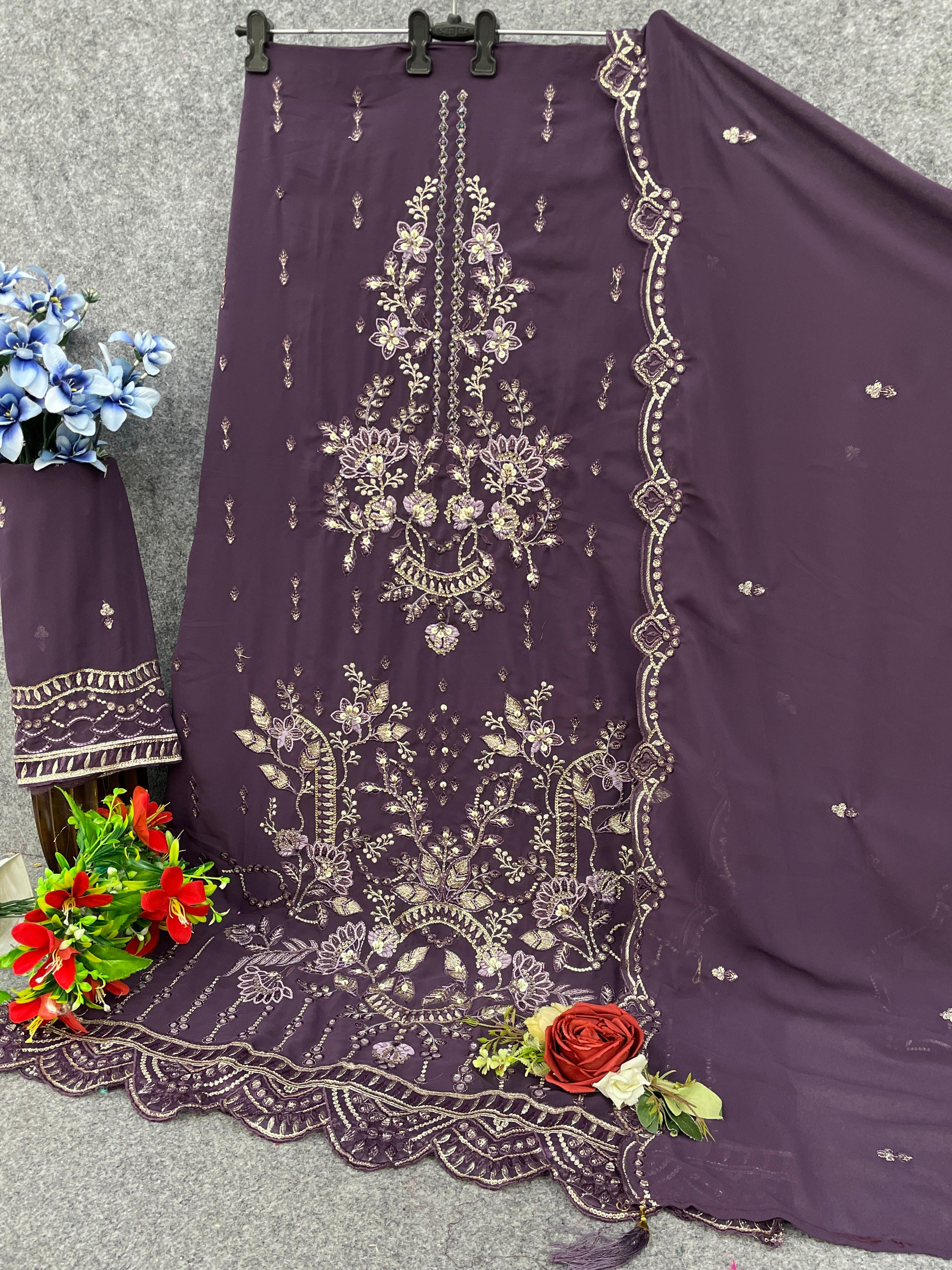 D Lavender Fox Georgette Semi Stiutched Suit with Embroidery Sequence Work
