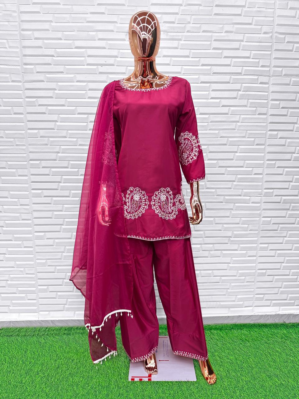 D Magenta Crape Readymade Salwar Suit with Embroidery Work