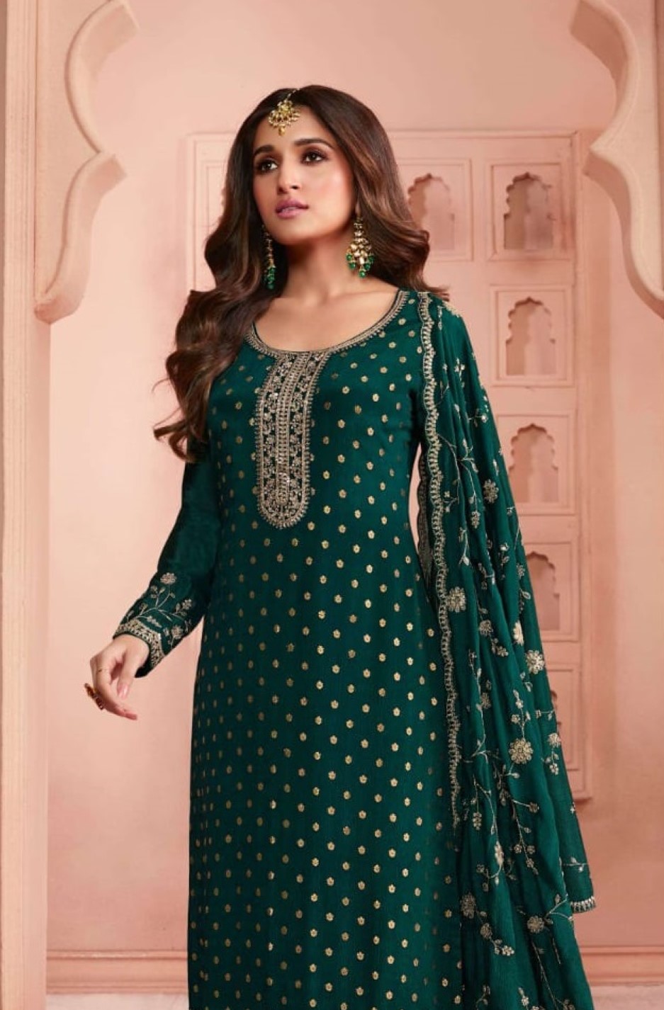 Dark Green Dola Jecard Silk Sequence Embroidered Semi-Stitched Salwar Suit
