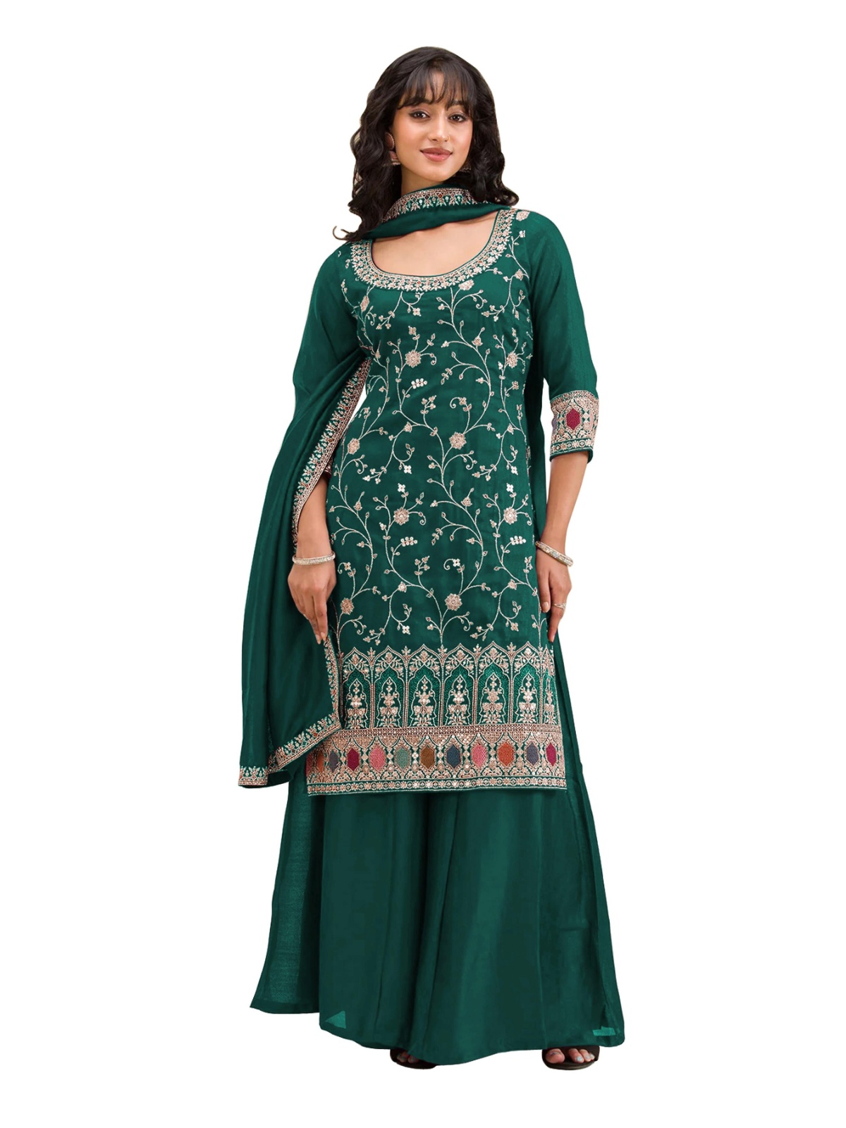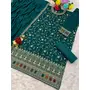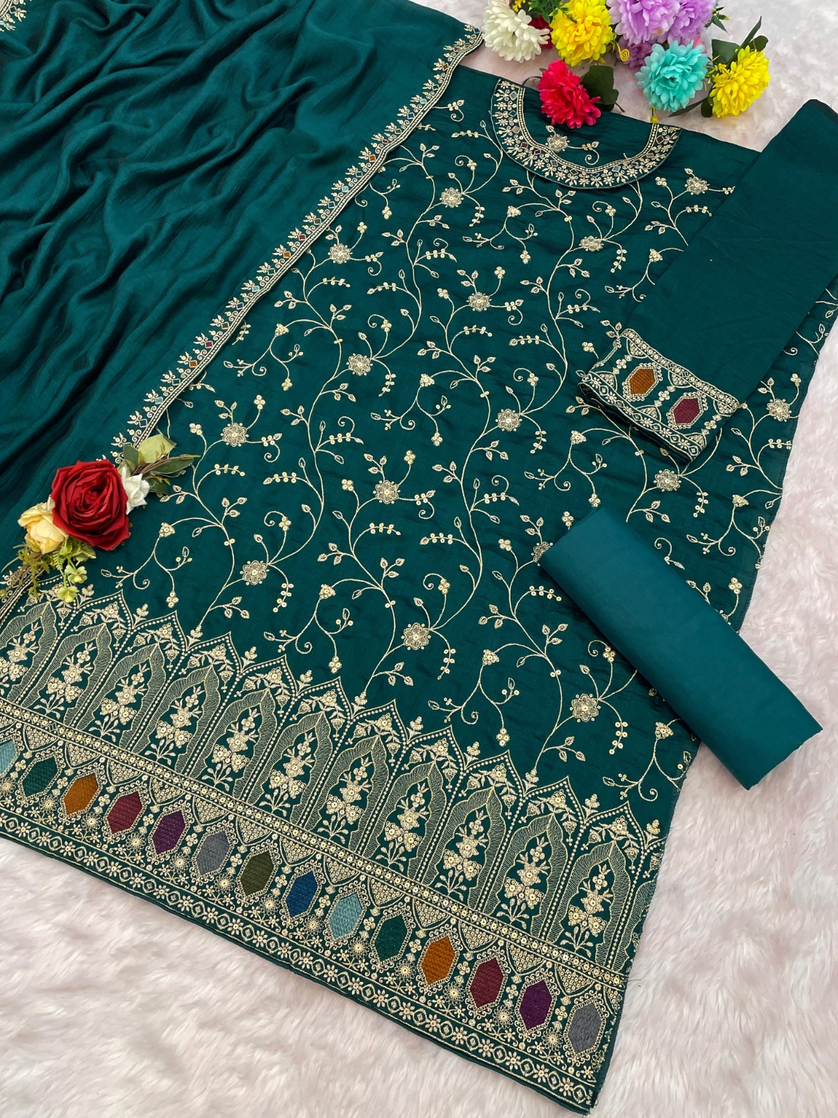 Dark Green vichitra semi stitched suit with heavy embroidery work