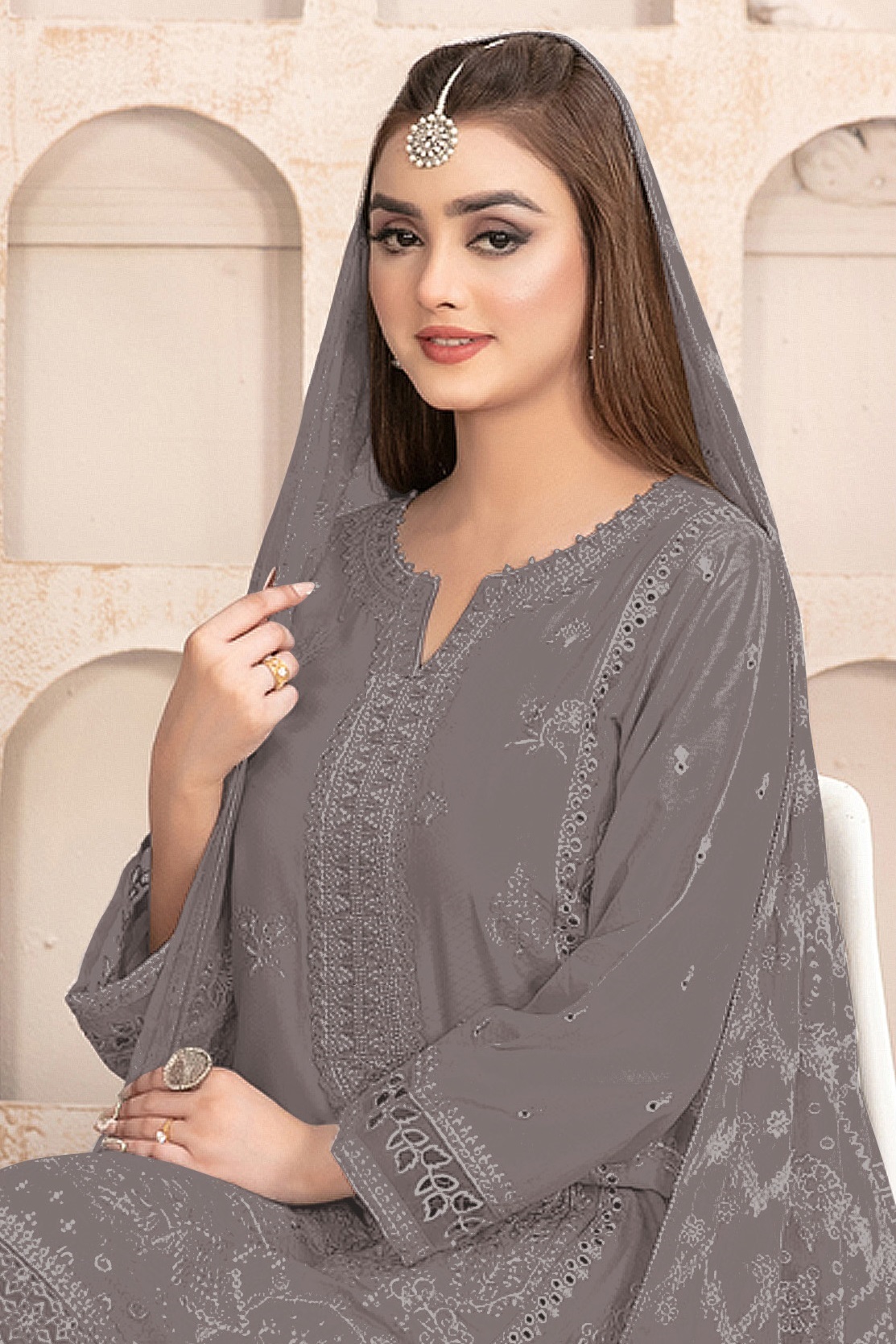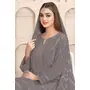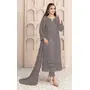 Dark Grey Embroidered Faux Georgette Semi Stitched Salwar Suit
