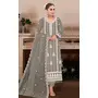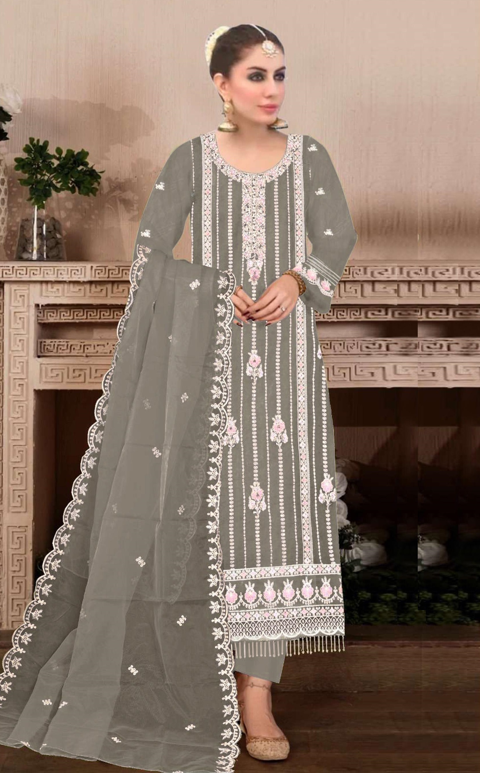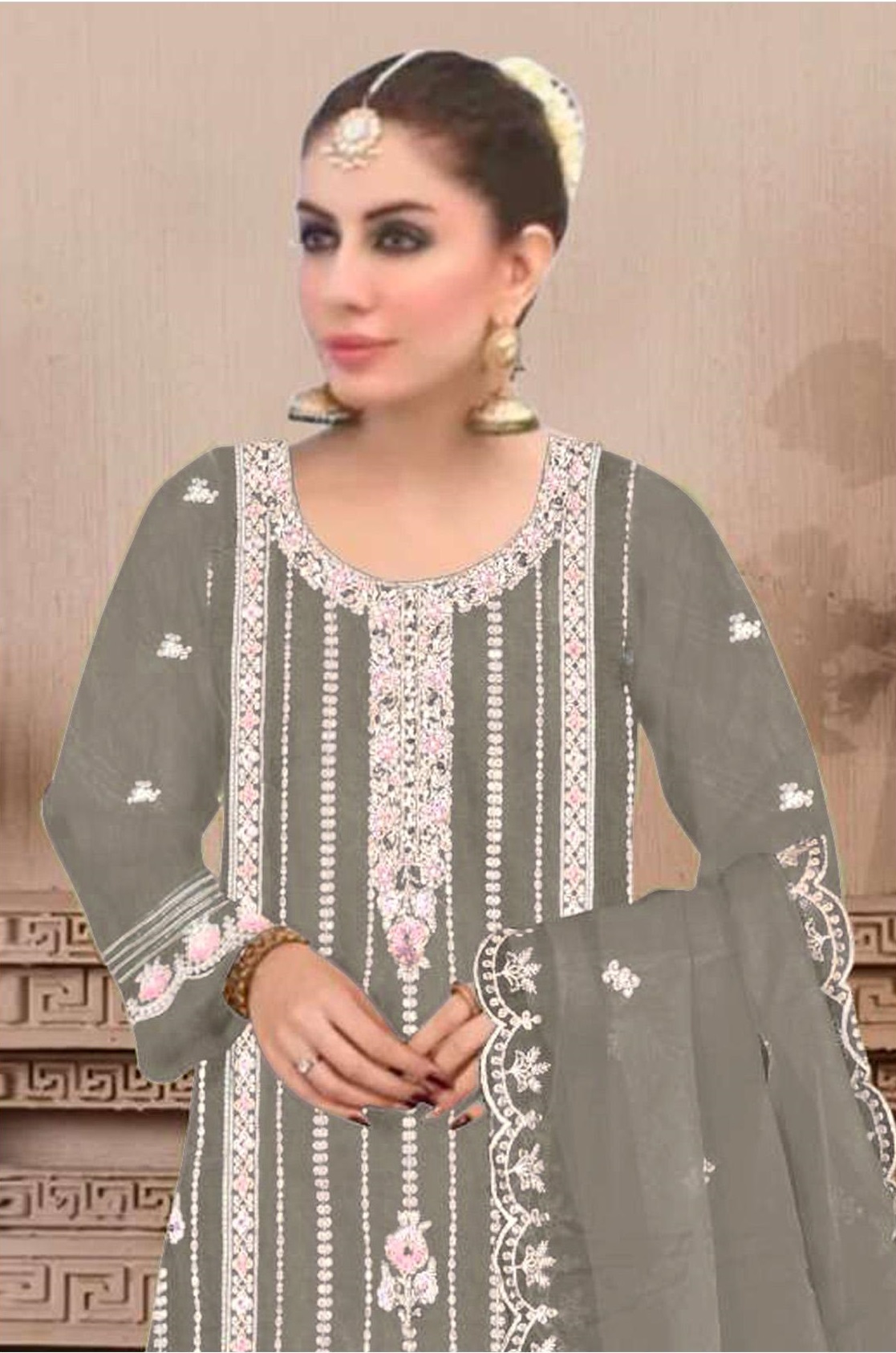 Dark Grey Embroidered Viscose Chinon Semi Stitched Salwar Suit