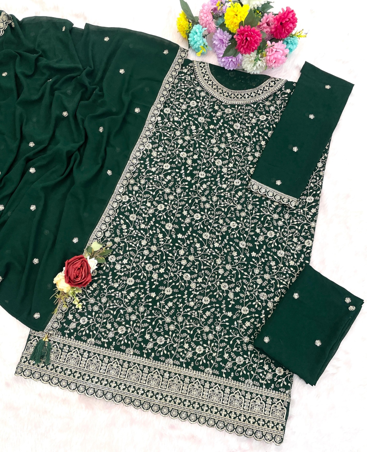 Green Blooming Georgette Semi Stitched suit with Heavy Embroidery & Sequence work