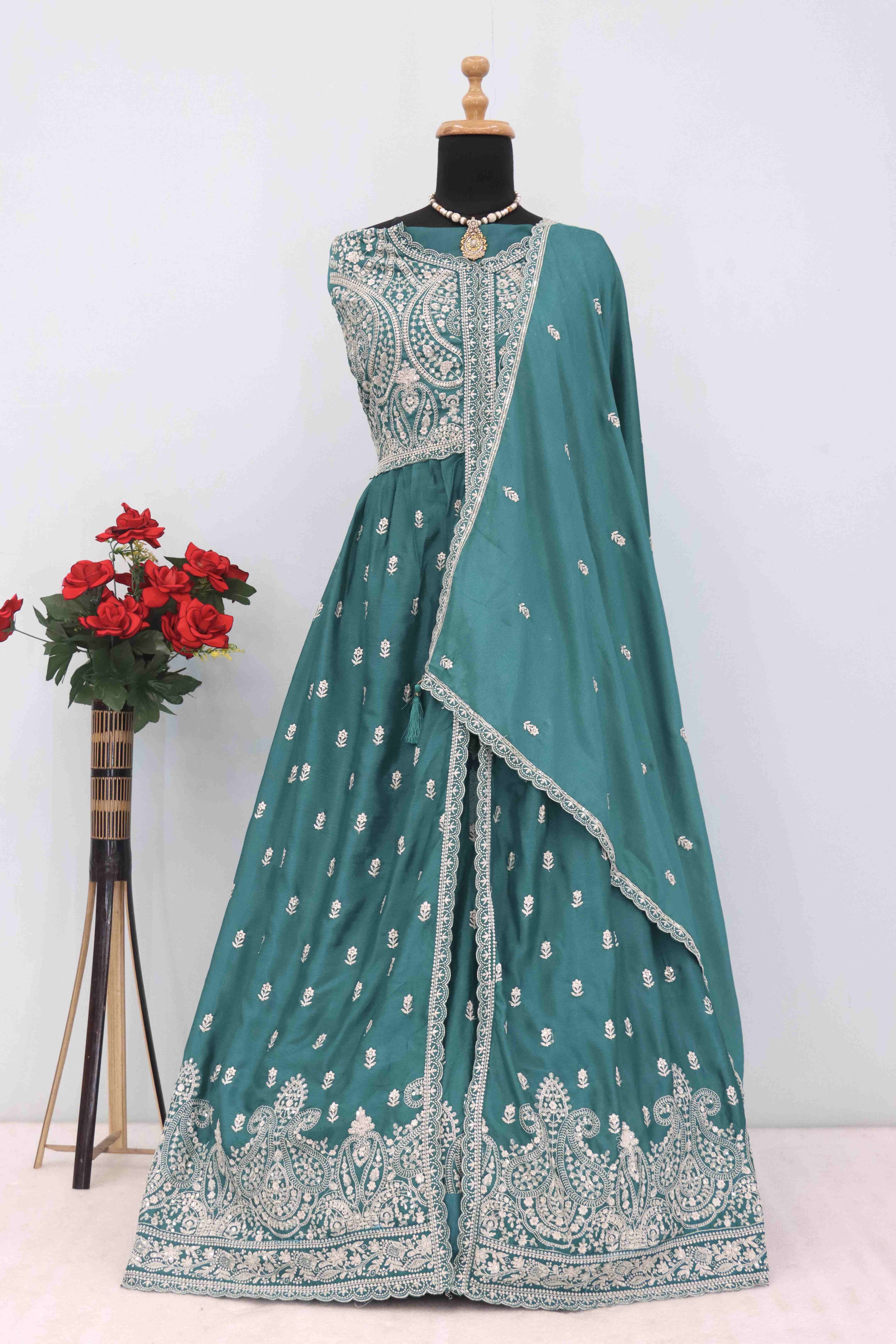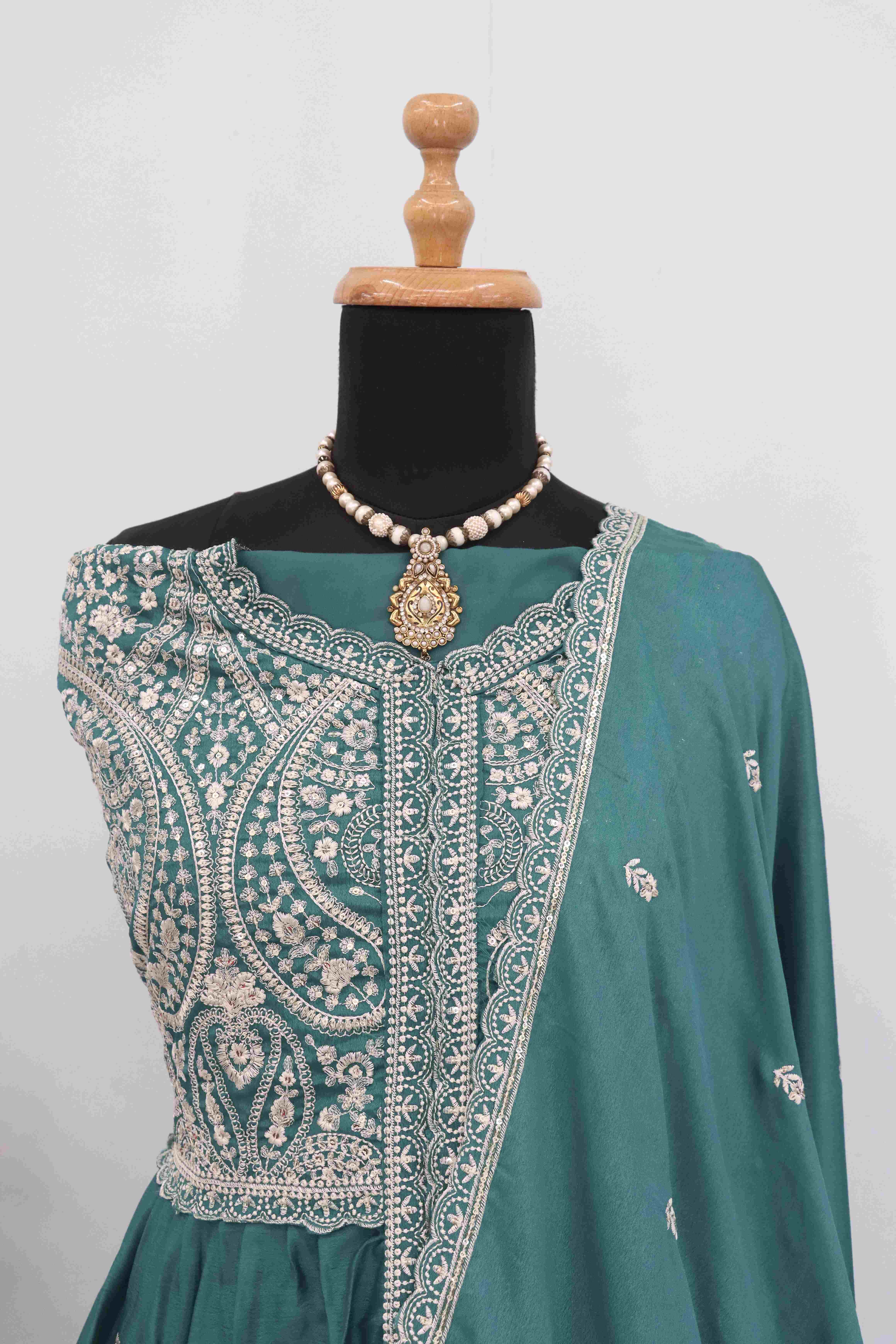 Green Chinon With Sequence Embroidery Semi Stitched Salwar Suit