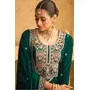 Green Embroderied with beads Velvet Semi-Stitched Plazo Suit