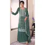 Green Embroderied Work Silk Semi-Stitched Sharara Suit