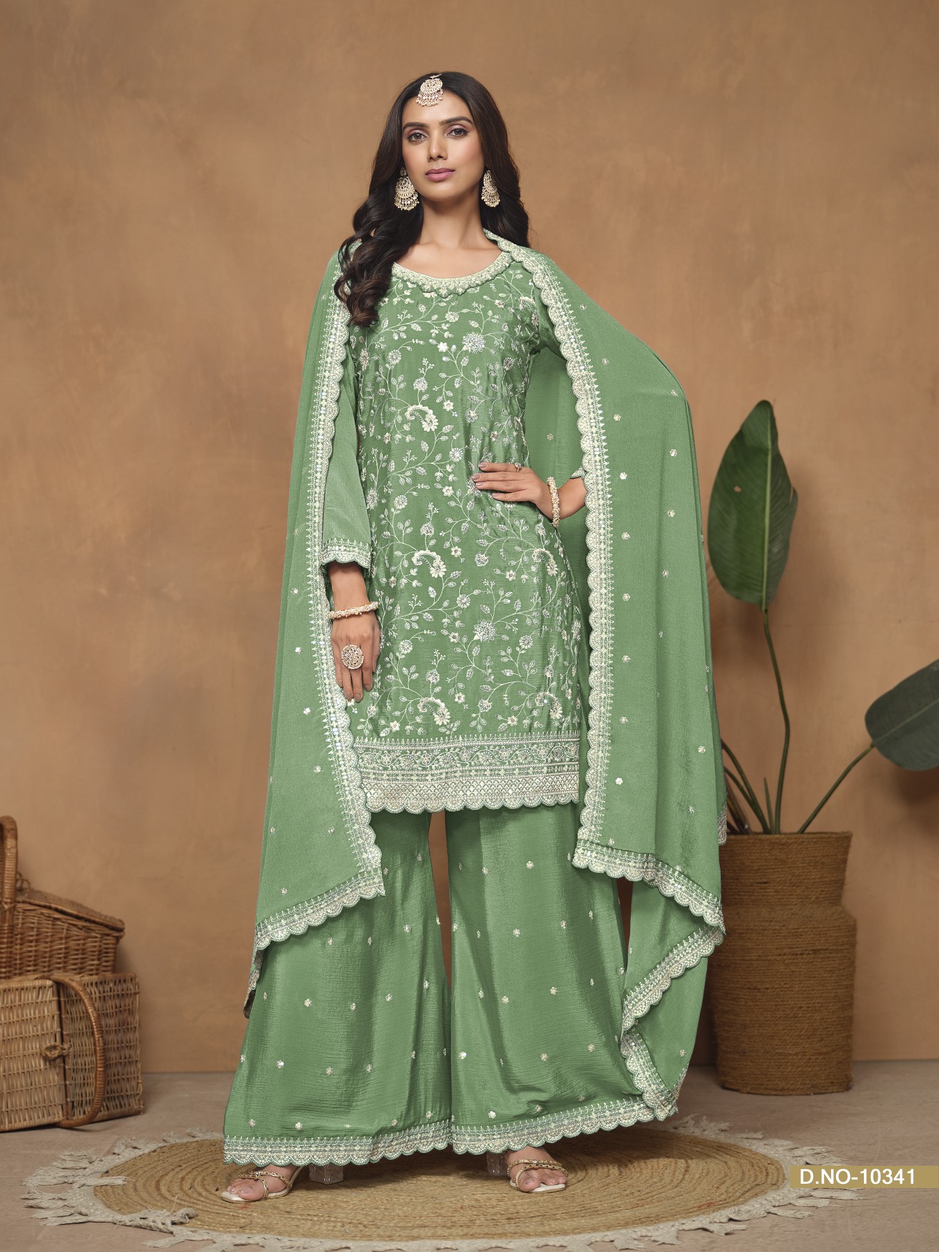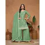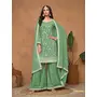 Green Embroidered Chinon Silk Semi Stitched Palazzo Suit
