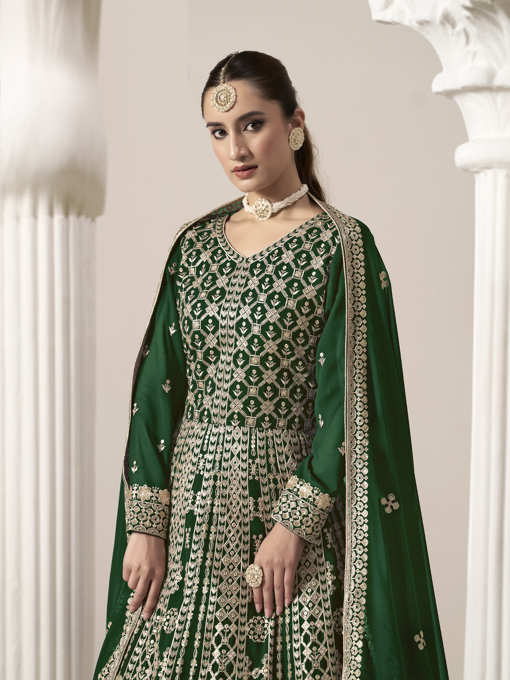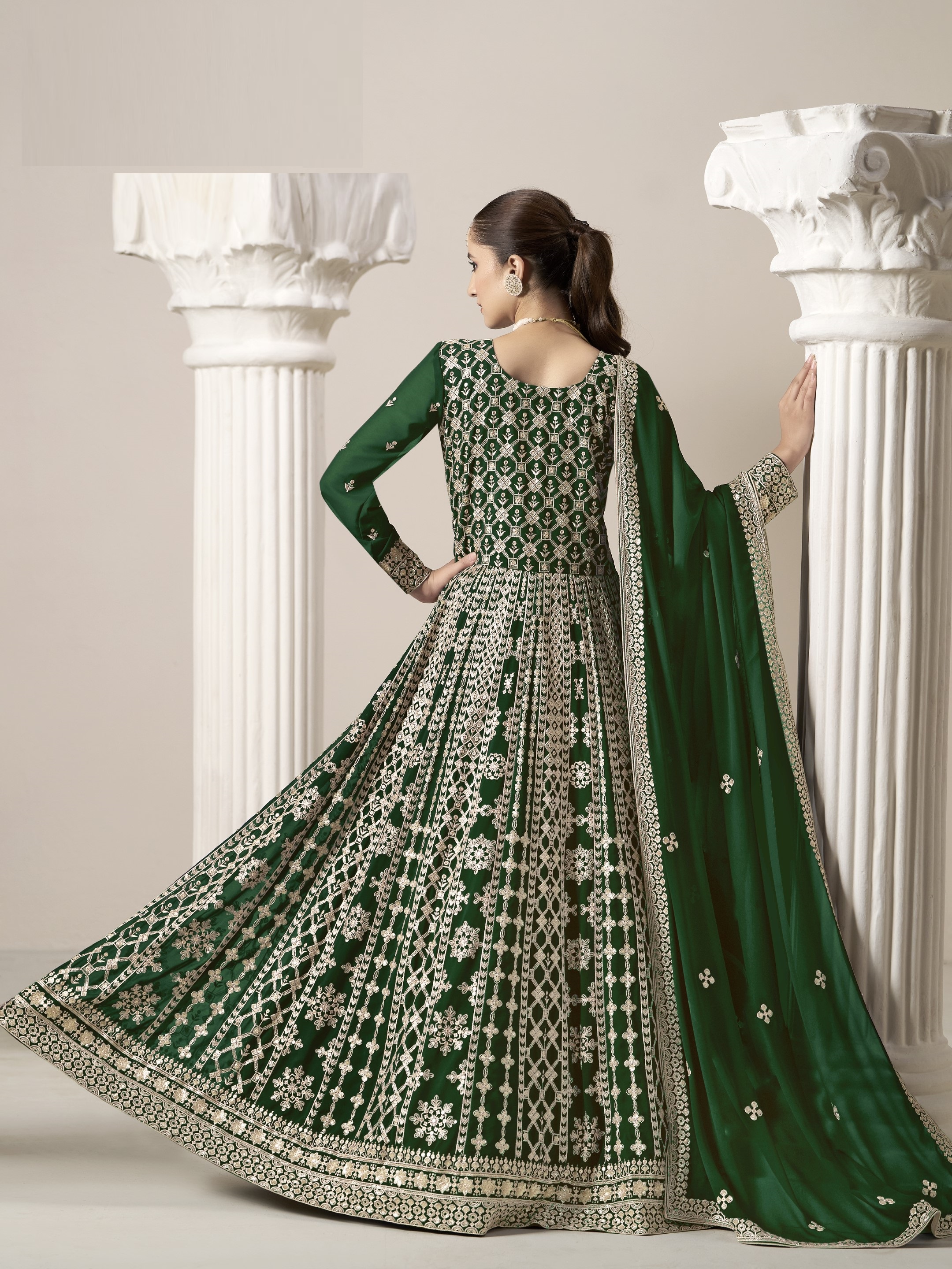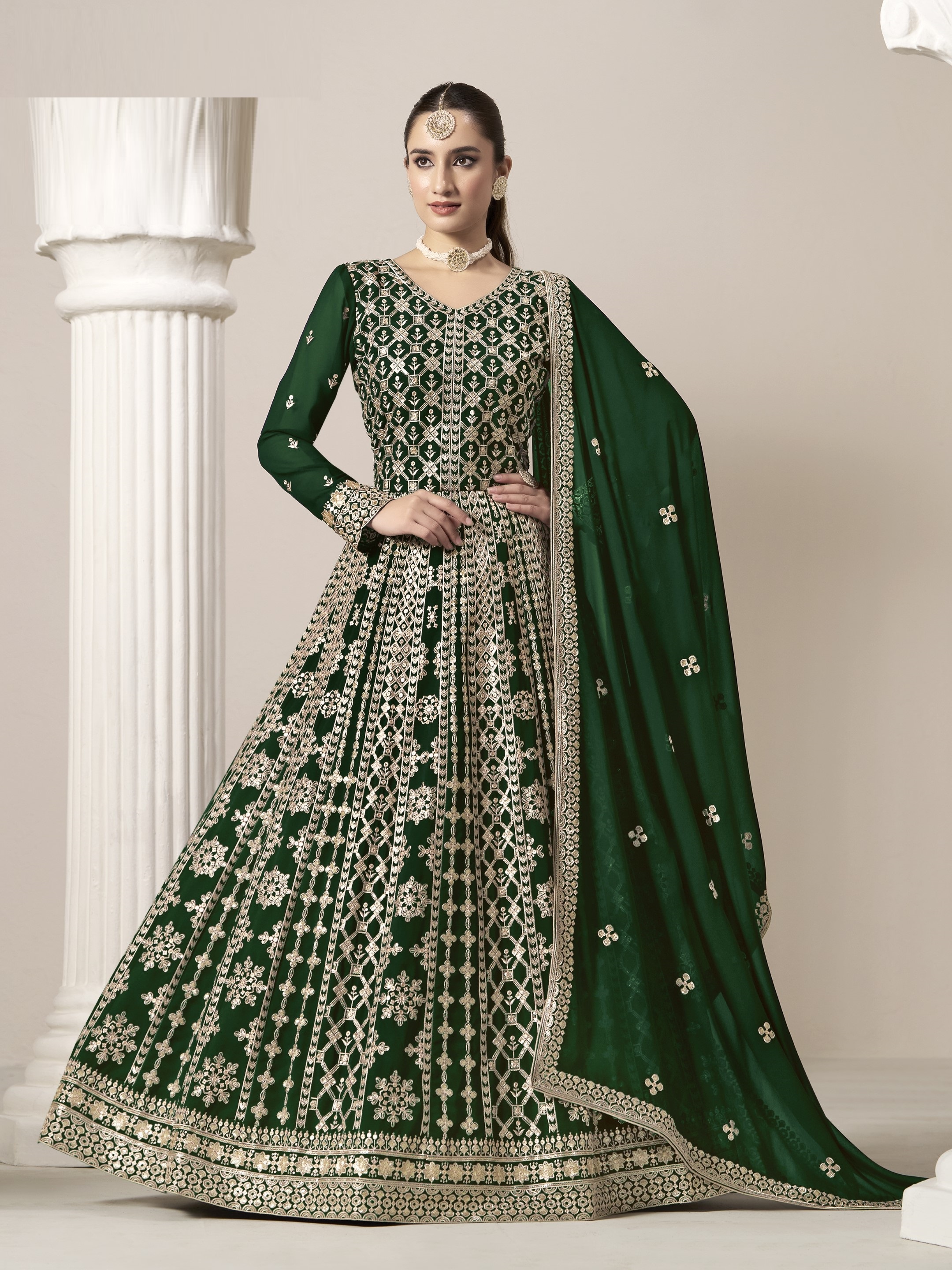 Green Embroidered Faux Georgette Semi Stitched Anarkali Suit