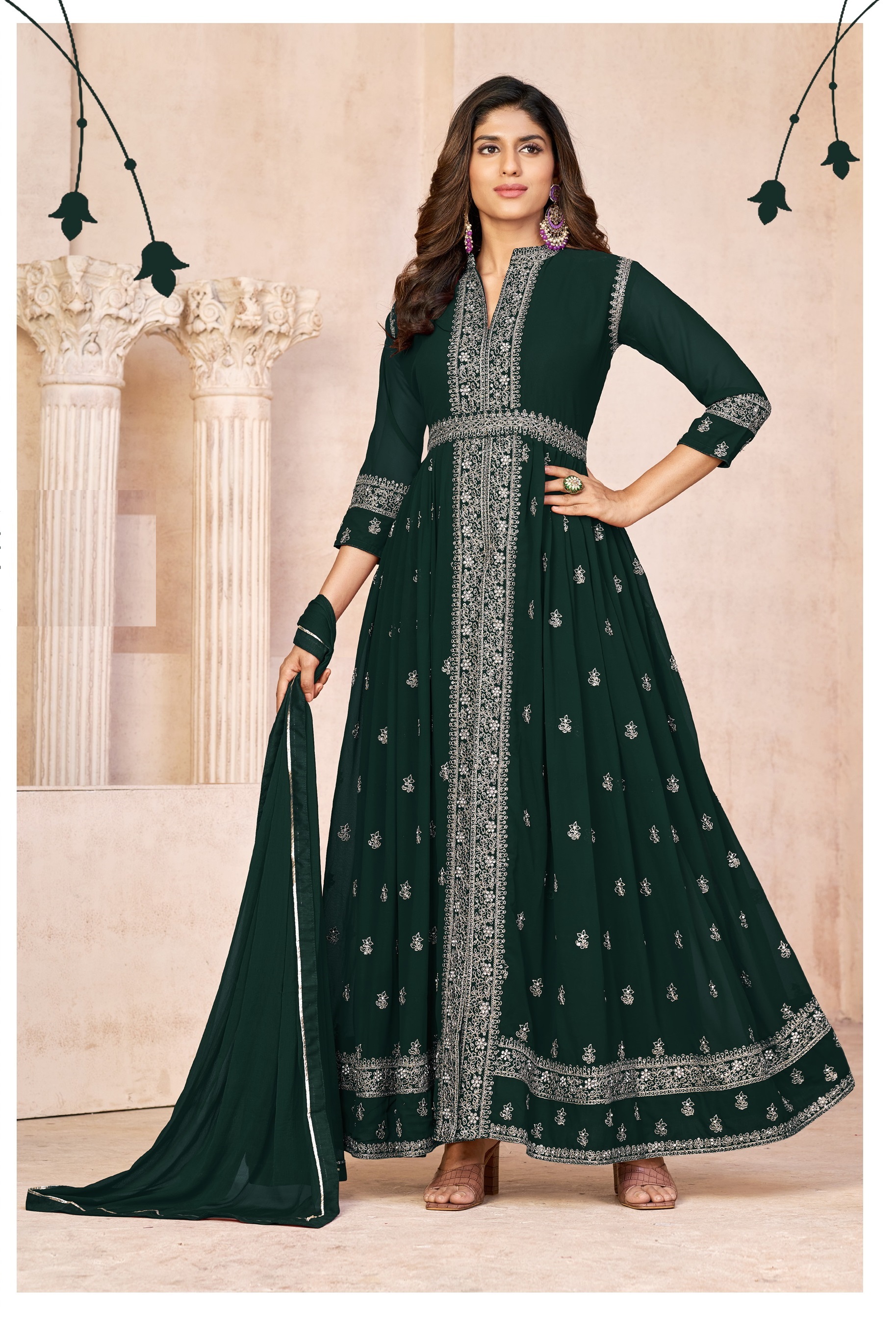 Green Embroidered Faux Georgette Semi Stitched Anarkali Suit
