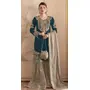 Green Embroidered Faux Georgette with Sequence Work Semi Stitched Sharara Suit