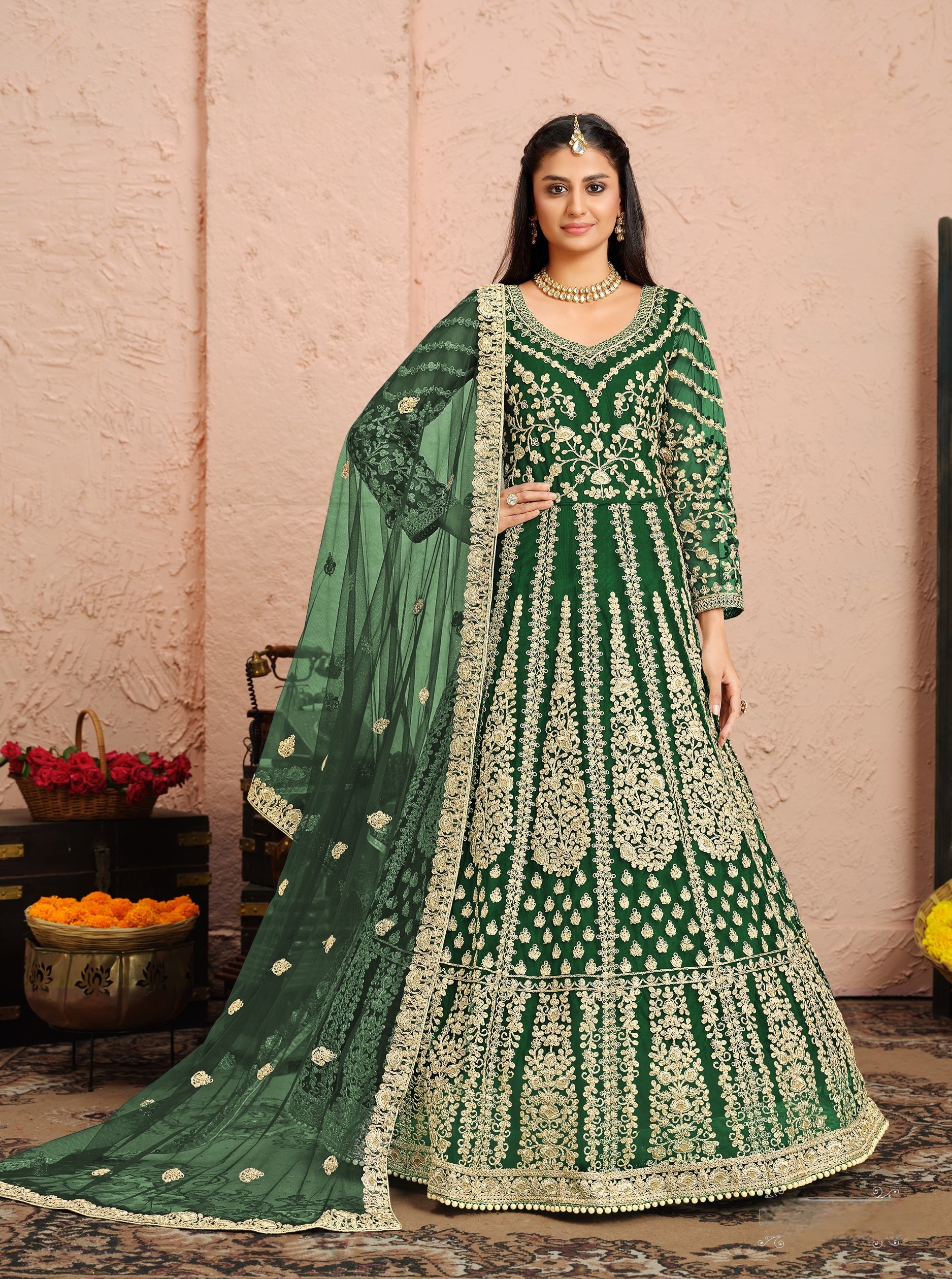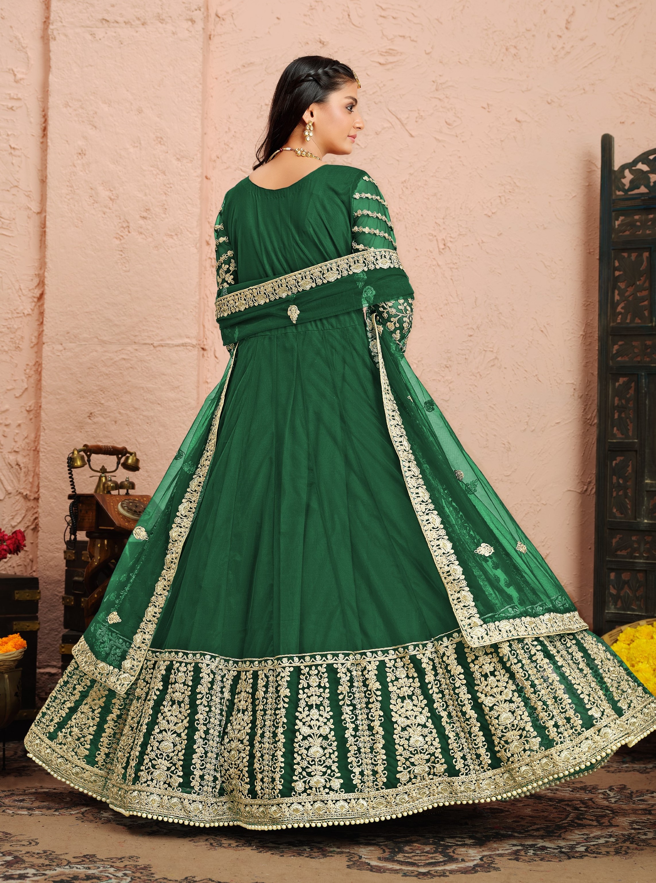 Green Embroidered Net Semi Stitched Anarkali Suit