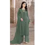 Green Faux Georgette Semi Stitched Suit with Embroidery Work